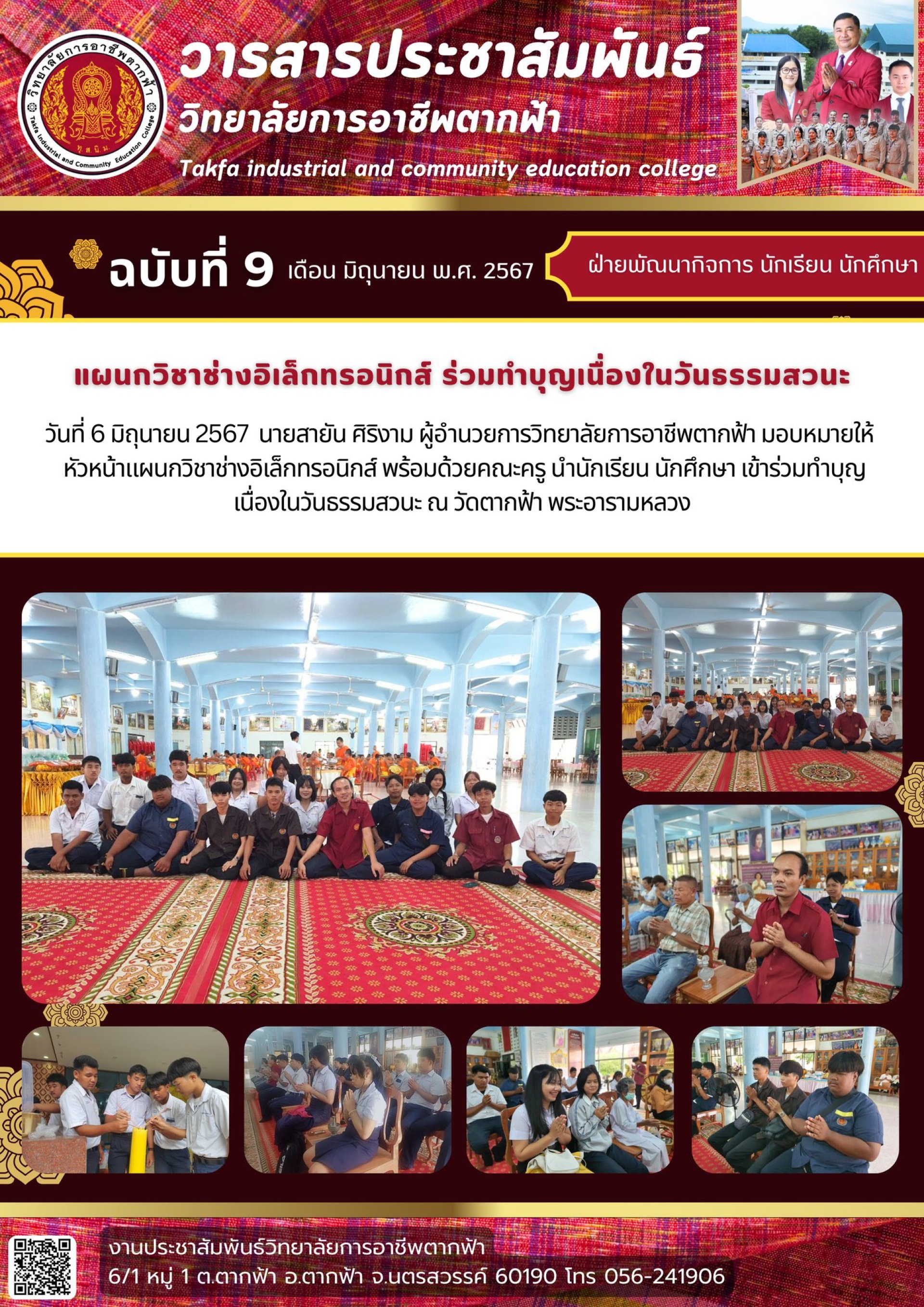 วารสารตากฟ้า ประจำเดือน มิถุนายน 2567 ฉบับที่ 9 แผนกวิชาช่างอิเล็กทรอนิกส์ ร่วมทำบุญเนื่องในวันธรรมสวนะ