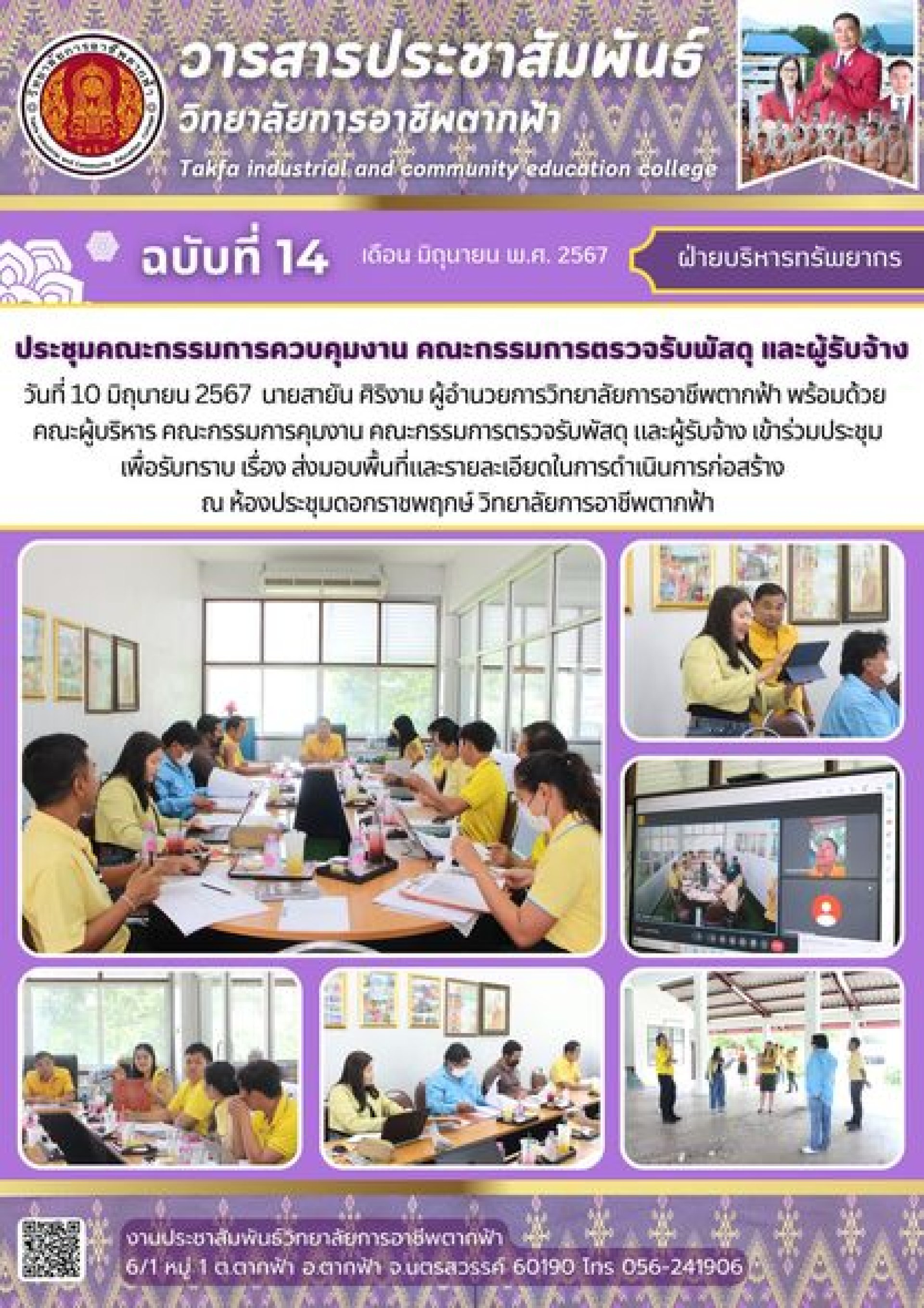 วารสารตากฟ้า ประจำเดือน มิถุนายน 2567 ฉบับที่ 14 ประชุมคณะกรรมการควบคุมงาน คณะกรรมการตรวจรับพัสดุ และผู้รับจ้าง