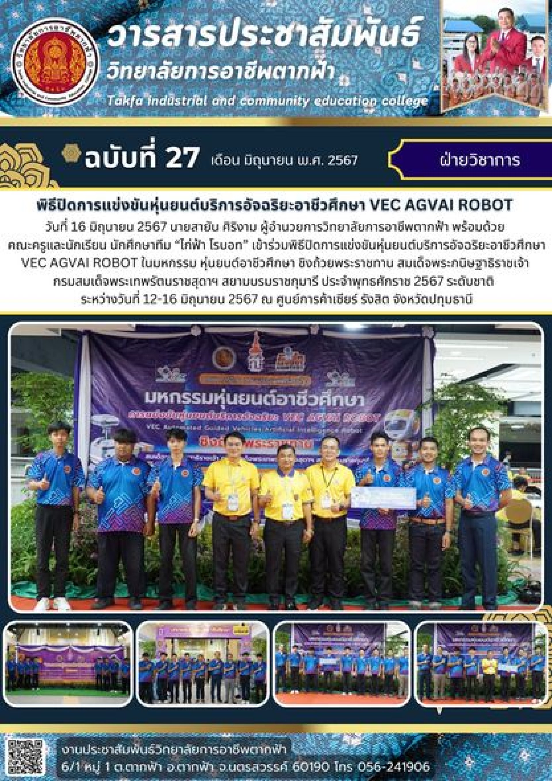 วารสารตากฟ้า ประจำเดือน มิถุนายน 2567 ฉบับที่ 27 พิธีปิดการแข่งขันหุ่นยนต์บริการอัจฉริยะอาชีวศึกษา VEC AGVAI ROBOT