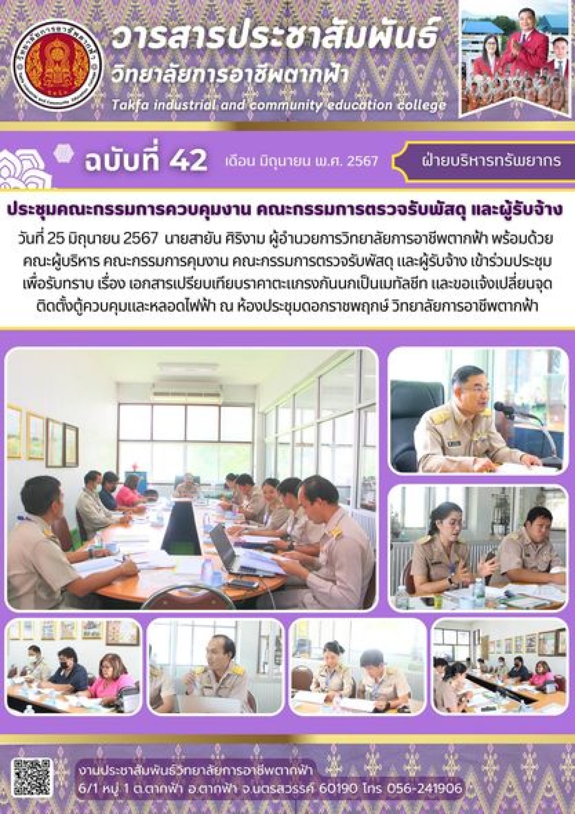 วารสารตากฟ้า ประจำเดือน มิถุนายน 2567 ฉบับที่ 42 ประชุมคณะกรรมการควบคุมงาน คณะกรรมการตรวจรับพัสดุ และผู้รับจ้าง