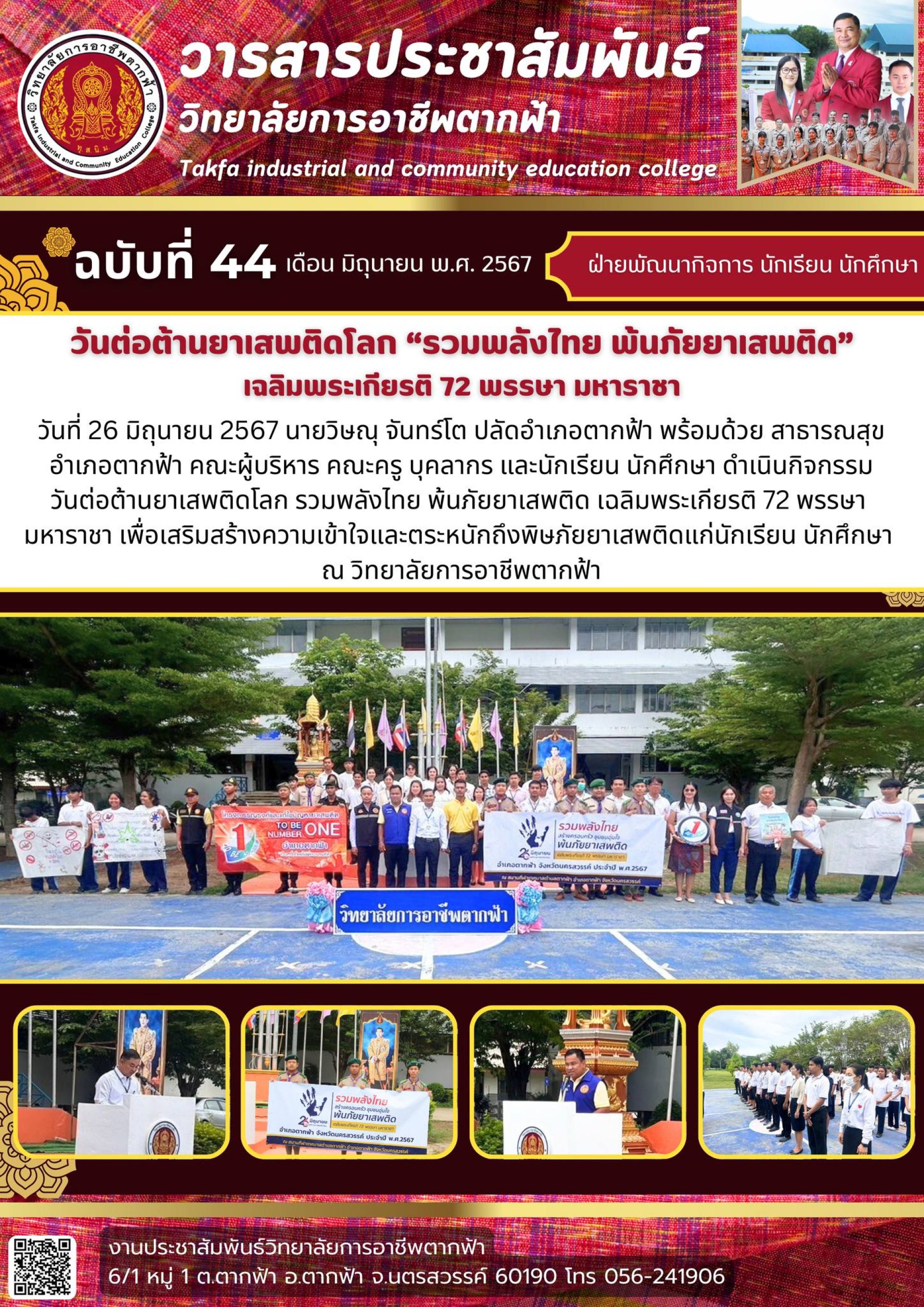 วารสารตากฟ้า ประจำเดือน มิถุนายน 2567 ฉบับที่ 44 วันต่อต้านยาเสพติดโลก รวมพลังไทย พ้นภัยยาเสพติด เฉลิมพระเกียรติ 72 พรรษา มหาราชา