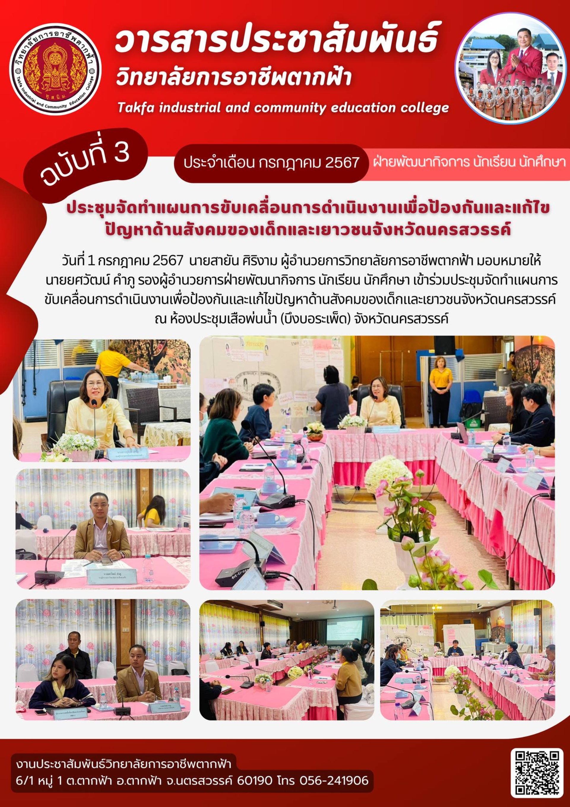 วารสารตากฟ้า ประจำเดือน กรกฎาคม 2567 ฉบับที่ 3 ประชุมจัดทำแผนการขับเคลื่อนการดำเนินงานเพื่อป้องกันและแก้ไขปัญหาด้านสังคมของเด็กและเยาวชนจังหวัดนครสวรรค์