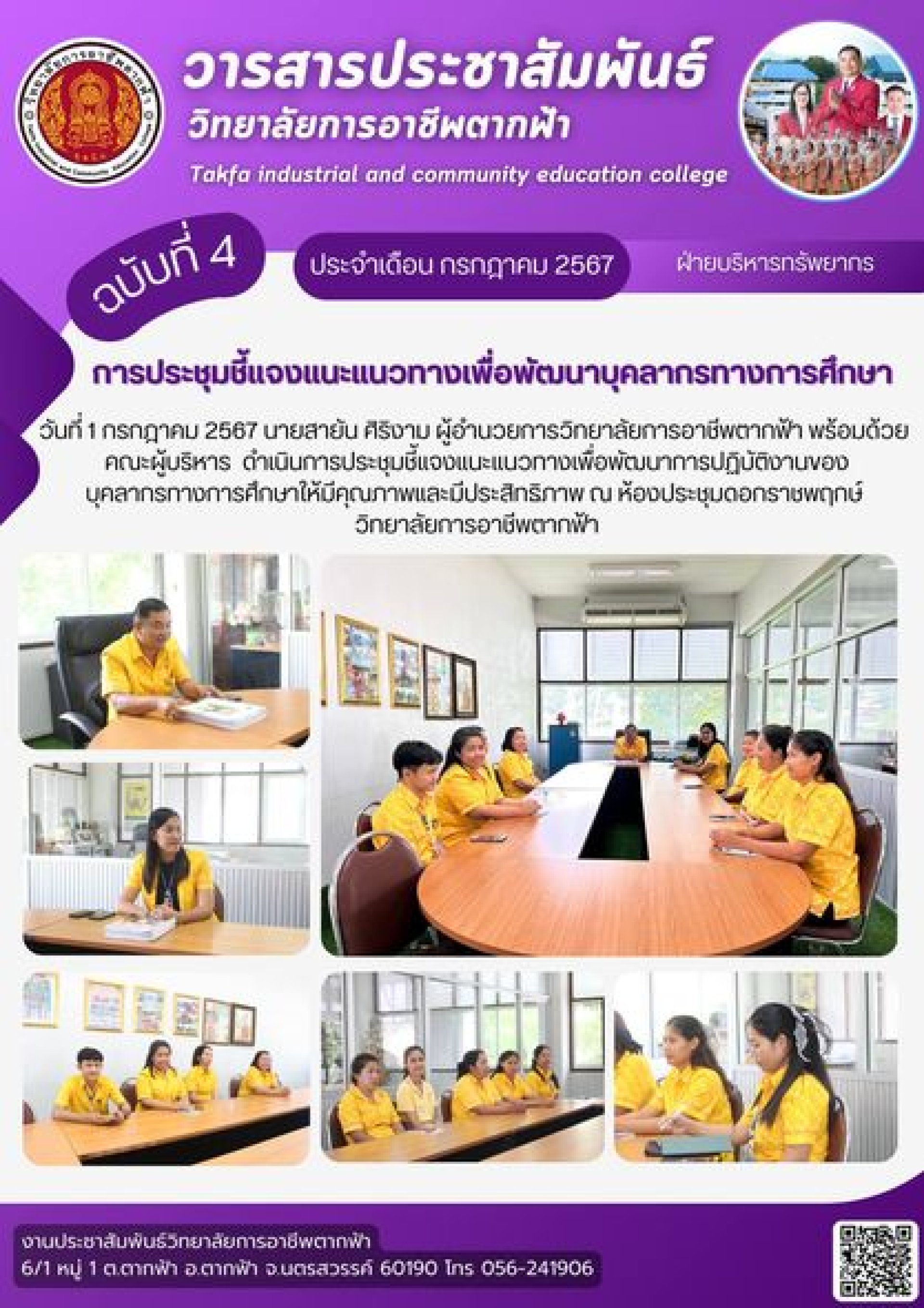 วารสารตากฟ้า ประจำเดือน กรกฎาคม 2567 ฉบับที่ 4 การประชุมชี้แจงแนะแนวทางเพื่อพัฒนาบุคลากรทางการศึกษา