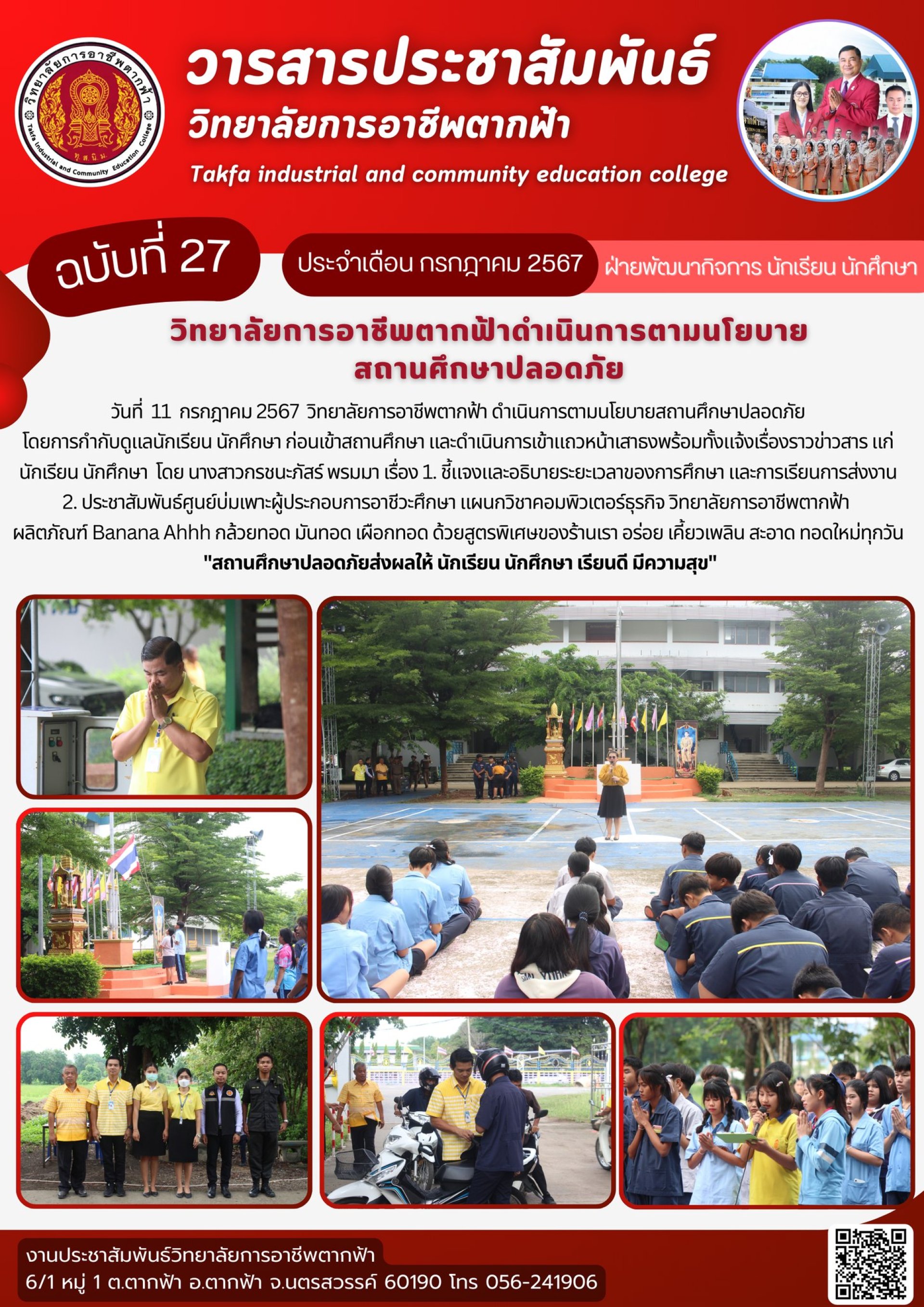 วารสารตากฟ้า ประจำเดือน กรกฎาคม 2567 ฉบับที่ 27 วิทยาลัยการอาชีพตากฟ้าดำเนินการตามนโยบายสถานศึกษาปลอดภัย