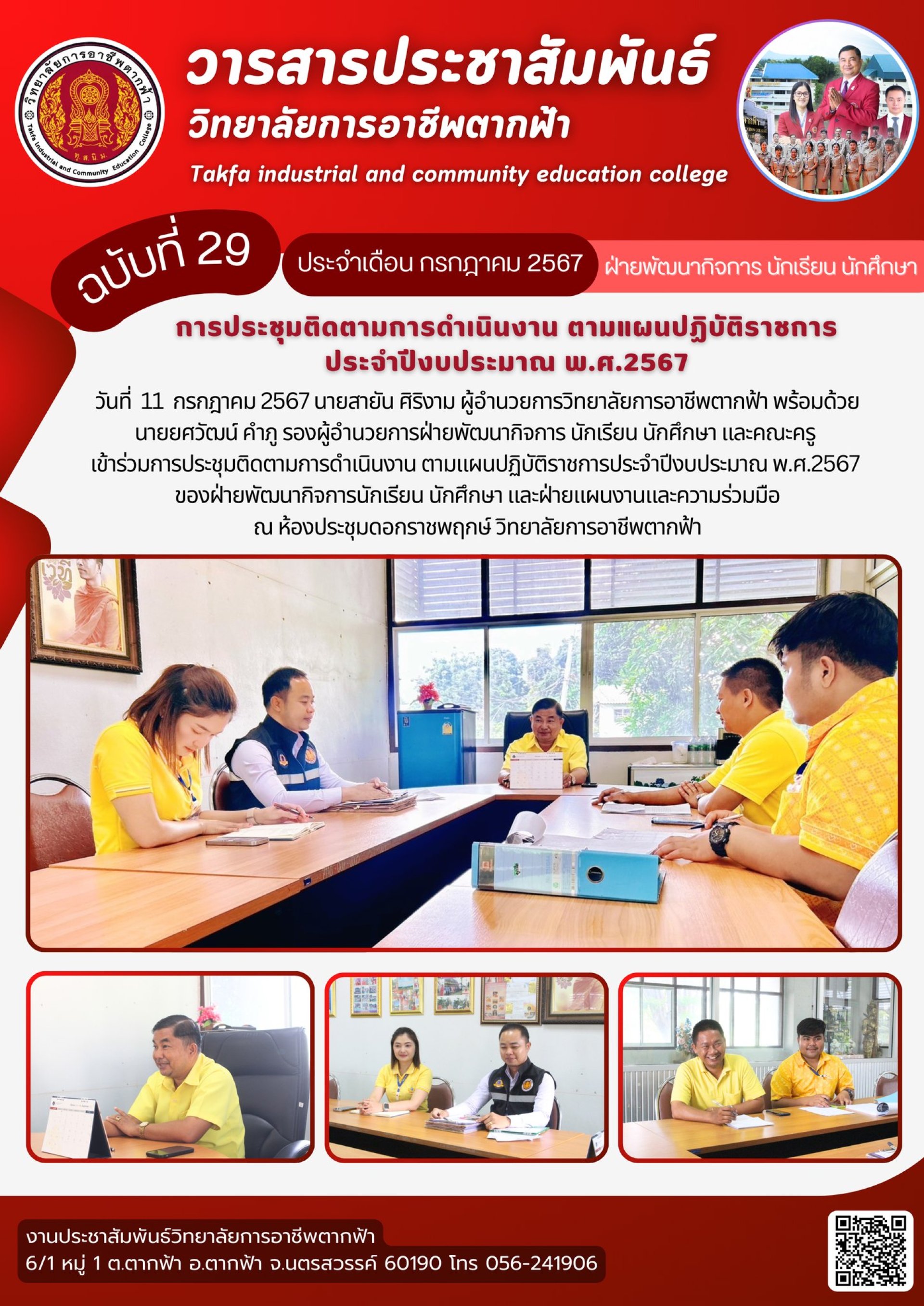 วารสารตากฟ้า ประจำเดือน กรกฎาคม 2567 ฉบับที่ 29 การประชุมติดตามการดำเนินงาน ตามแผนปฏิบัติราชการ ประจำปีงบประมาณ พ.ศ.2567