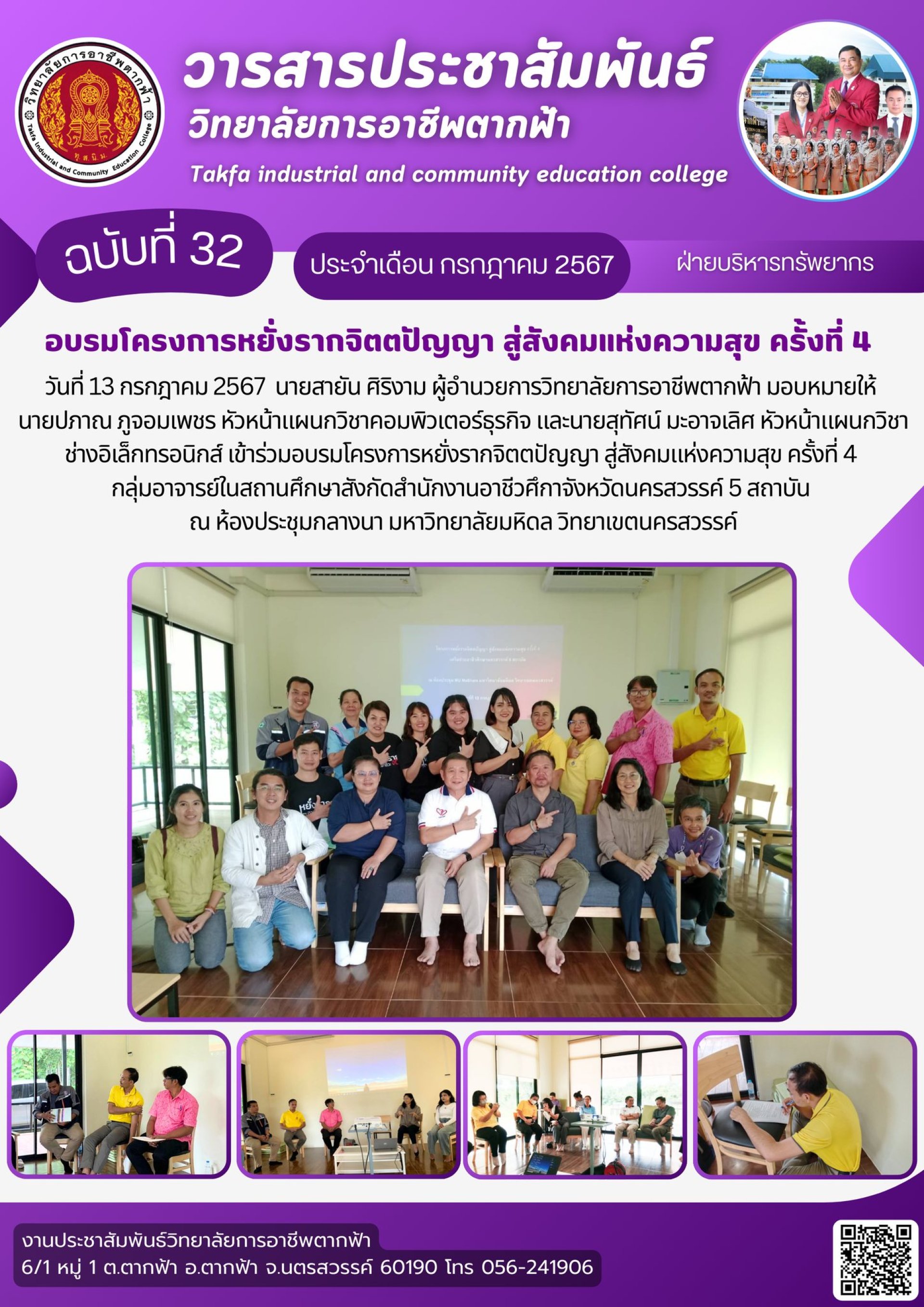 วารสารตากฟ้า ประจำเดือน กรกฎาคม 2567 ฉบับที่ 32 อบรมโครงการหยั่งรากจิตตปัญญา สู่สังคมแห่งความสุข ครั้งที่ 4