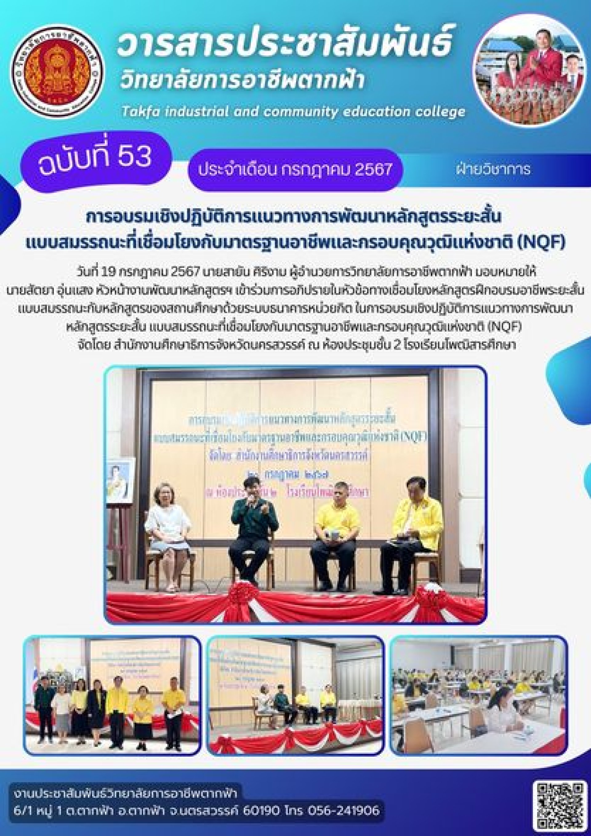 วารสารตากฟ้า ประจำเดือน กรกฎาคม 2567 ฉบับที่ 53 การอบรมเชิงปฏิบัติการแนวทางการพัฒนาหลักสูตรระยะสั้น แบบสมรรถนะที่เชื่อมโยงกับมาตรฐานอาชีพและกรอบคุณวุฒิแห่งชาติ (NQF)
