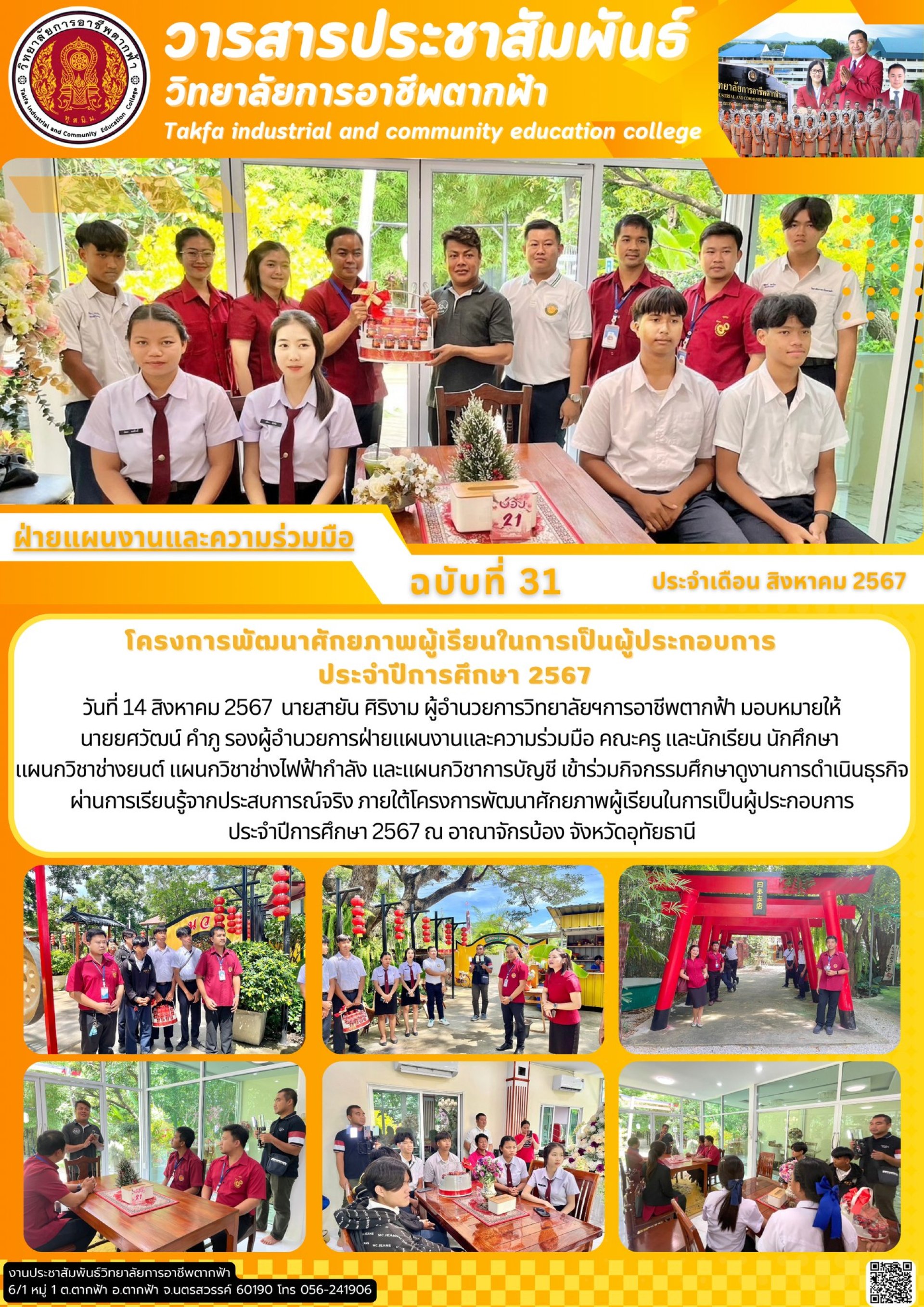 วารสารตากฟ้า ประจำเดือน สิงหาคม 2567 ฉบับที่ 31 โครงการพัฒนาศักยภาพผู้เรียนในการเป็นผู้ประกอบการ ประจำปีการศึกษา 2567