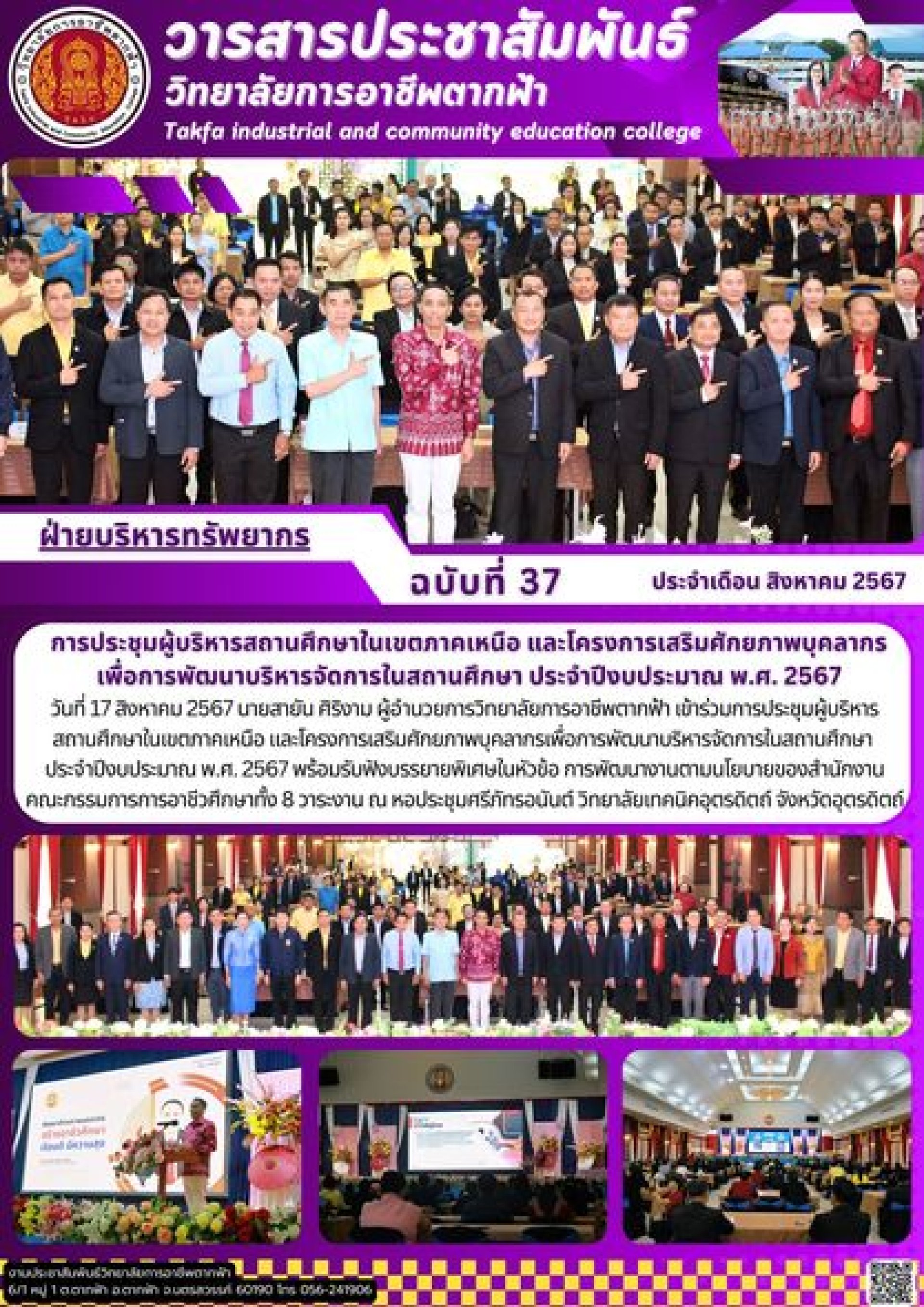 วารสารตากฟ้า ประจำเดือน สิงหาคม 2567 ฉบับที่ 37 การประชุมผู้บริหารสถานศึกษาในเขตภาคเหนือ และโครงการเสริมศักยภาพบุคลากร เพื่อการพัฒนาบริหารจัดการในสถานศึกษา ประจำปีงบประมาณ พ.ศ. 2567