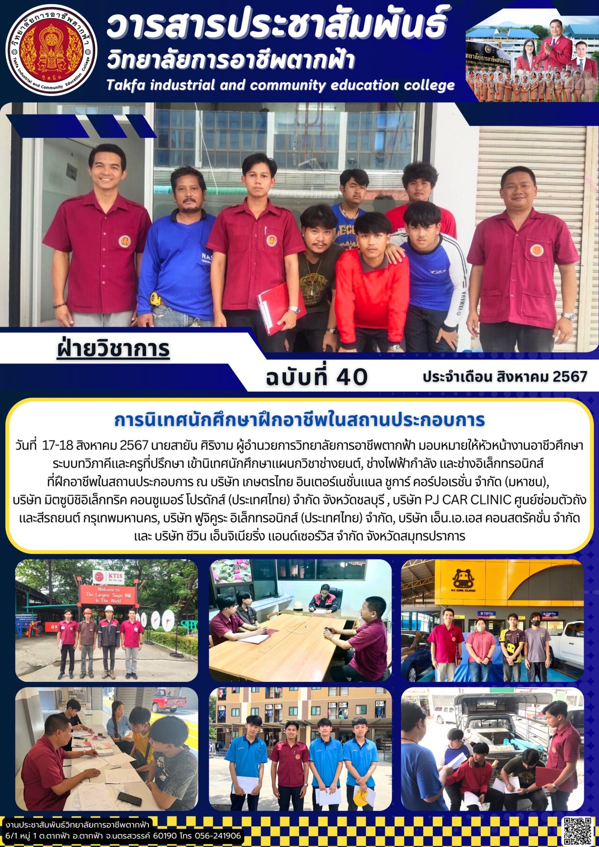 วารสารตากฟ้า ประจำเดือน สิงหาคม 2567 ฉบับที่ 40 การนิเทศนักศึกษาฝึกอาชีพในสถานประกอบการ