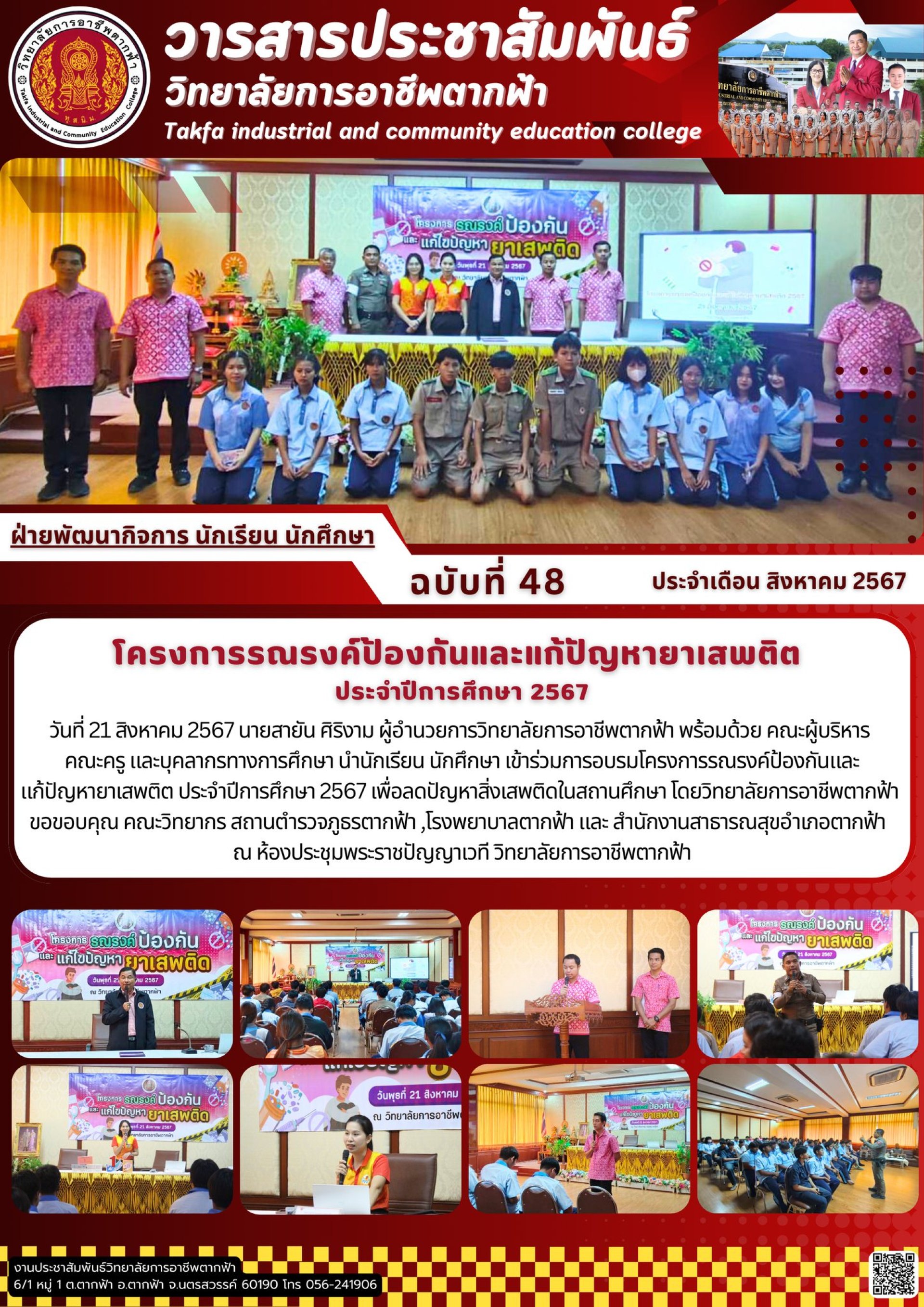 วารสารตากฟ้า ประจำเดือน สิงหาคม 2567 ฉบับที่ 48 โครงการรณรงค์ป้องกันและแก้ปัญหายาเสพติต ประจำปีการศึกษา 2567