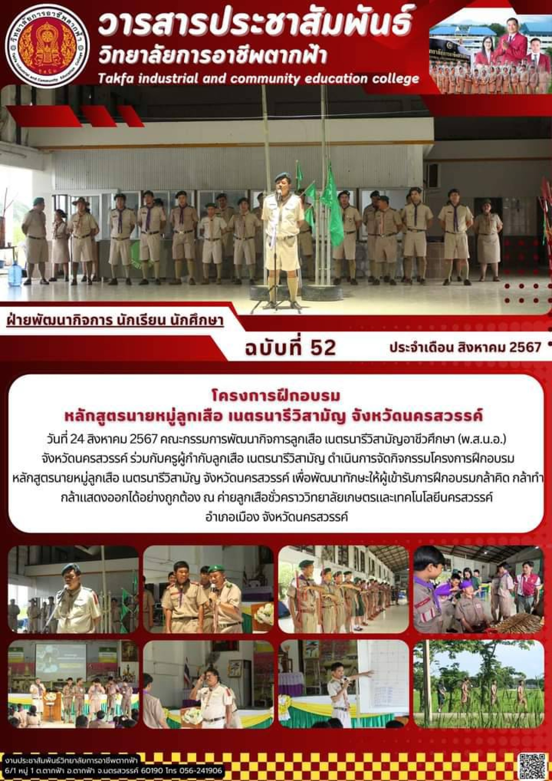 วารสารตากฟ้า ประจำเดือน สิงหาคม 2567 ฉบับที่ 52 โครงการฝึกอบรมหลักสูตรนายหมู่ลูกเสือ เนตรนารีวิสามัญ จังหวัดนครสวรรค์