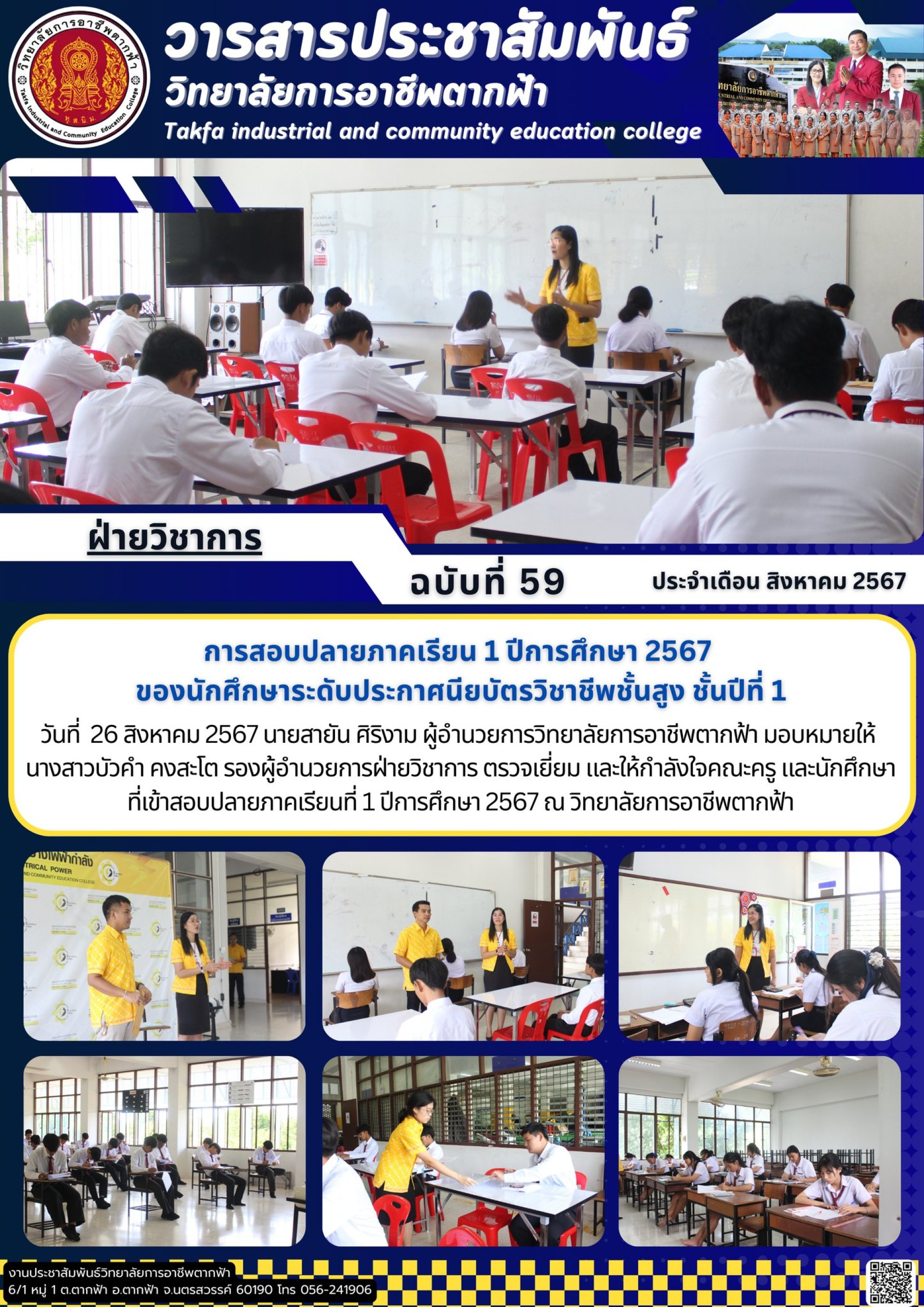 วารสารตากฟ้า ประจำเดือน สิงหาคม 2567 ฉบับที่ 59 การสอบปลายภาคเรียน 1 ปีการศึกษา 2567 ของนักศึกษาระดับประกาศนียบัตรวิชาชีพชั้นสูง ชั้นปีที่ 1