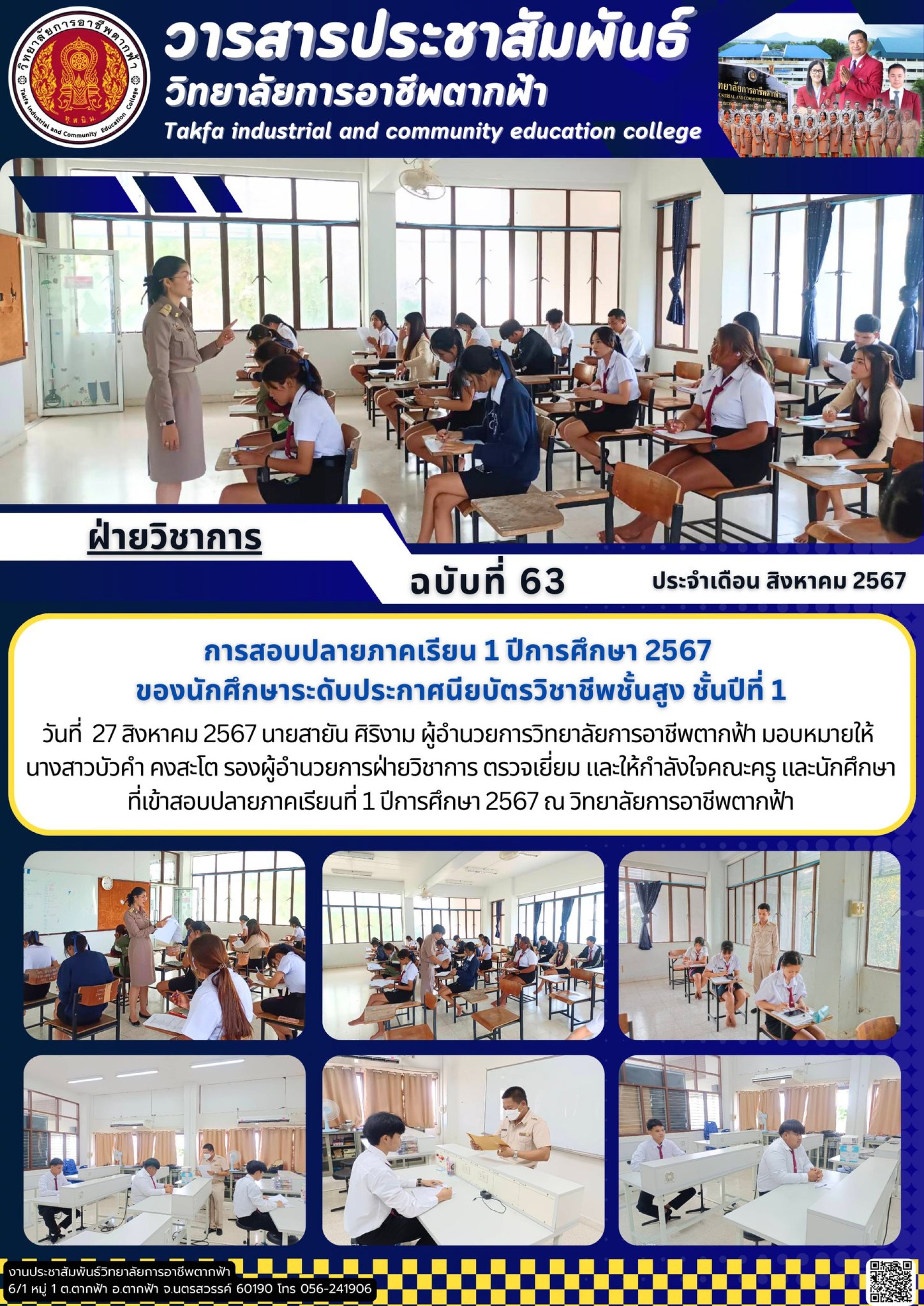 วารสารตากฟ้า ประจำเดือน สิงหาคม 2567 ฉบับที่ 63 การสอบปลายภาคเรียน 1 ปีการศึกษา 2567 ของนักศึกษาระดับประกาศนียบัตรวิชาชีพชั้นสูง ชั้นปีที่ 1