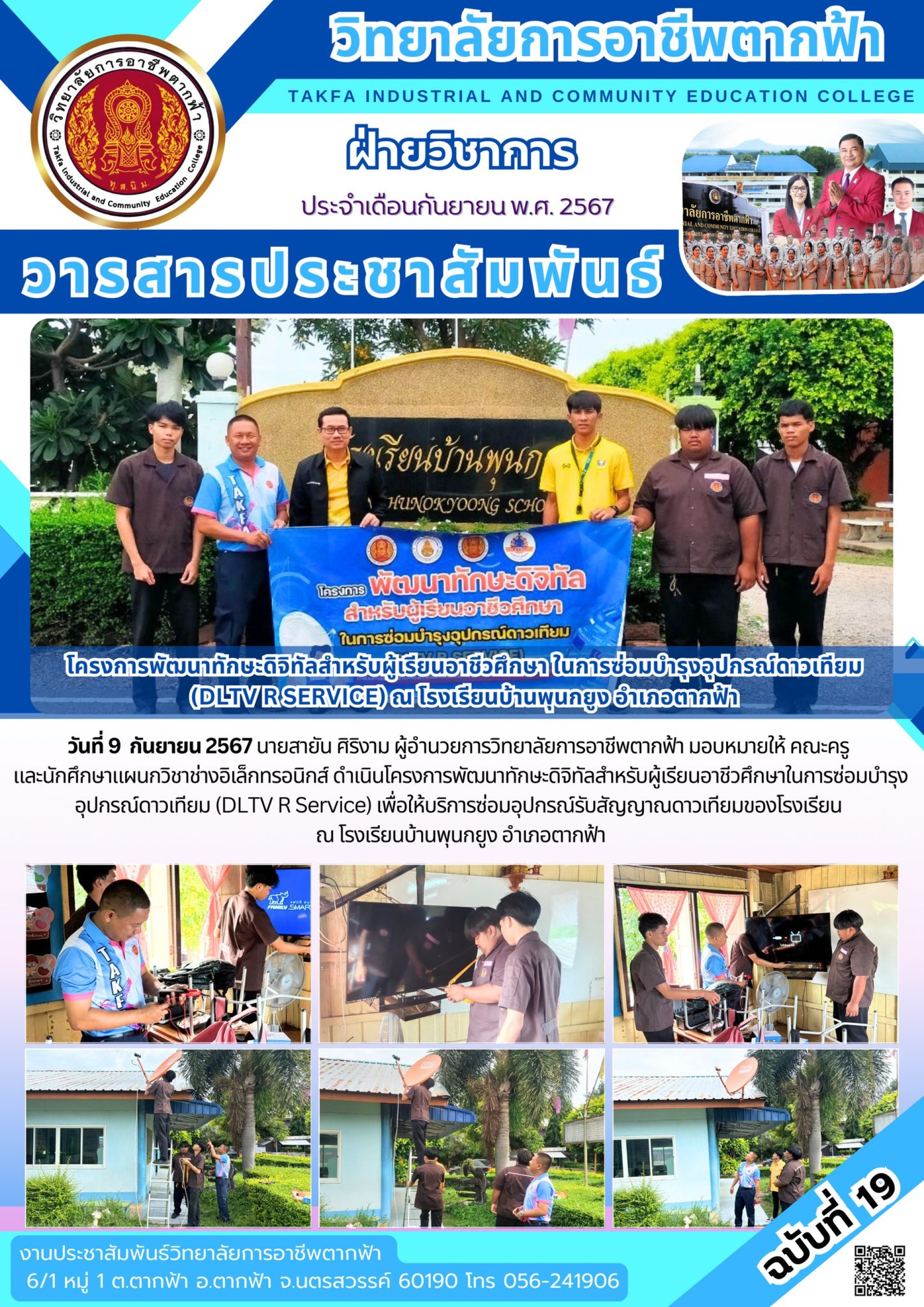 วารสารตากฟ้า ประจำเดือน กันยายน 2567 ฉบับที่ 19 โครงการพัฒนาทักษะดิจิทัลสำหรับผู้เรียนอาชีวศึกษา ในการซ่อมบำรุงอุปกรณ์ดาวเทียม (DLTV R SERVICE) ณ โรงเรียนบ้านพุนกยูง อำเภอตากฟ้า