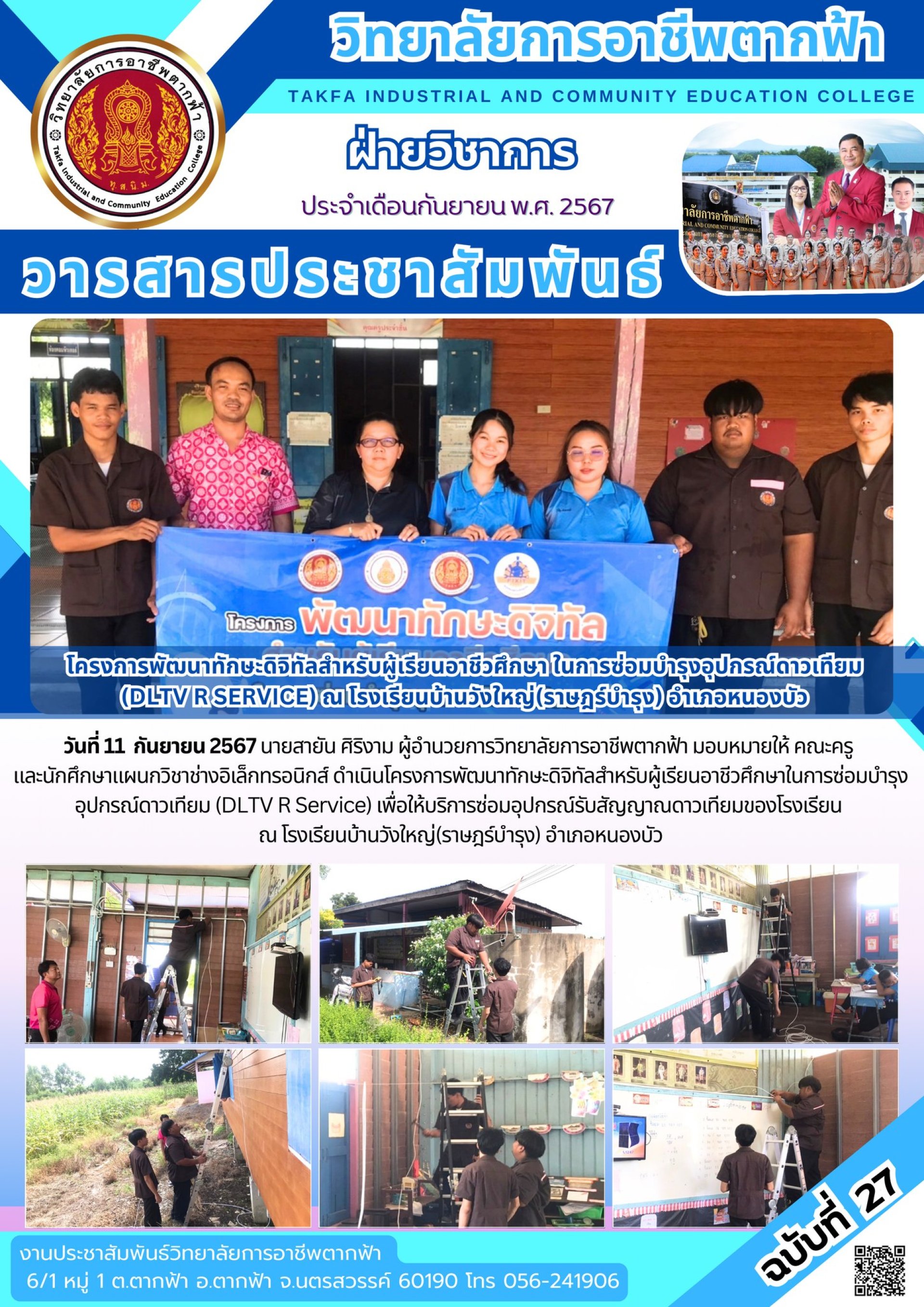 วารสารตากฟ้า ประจำเดือน กันยายน 2567 ฉบับที่ 27 โครงการพัฒนาทักษะดิจิทัลสำหรับผู้เรียนอาชีวศึกษา ในการซ่อมบำรุงอุปกรณ์ดาวเทียม (DLTV R SERVICE) ณ โรงเรียนบ้านวังใหญ่(ราษฎร์บำรุง) อำเภอหนองบัว