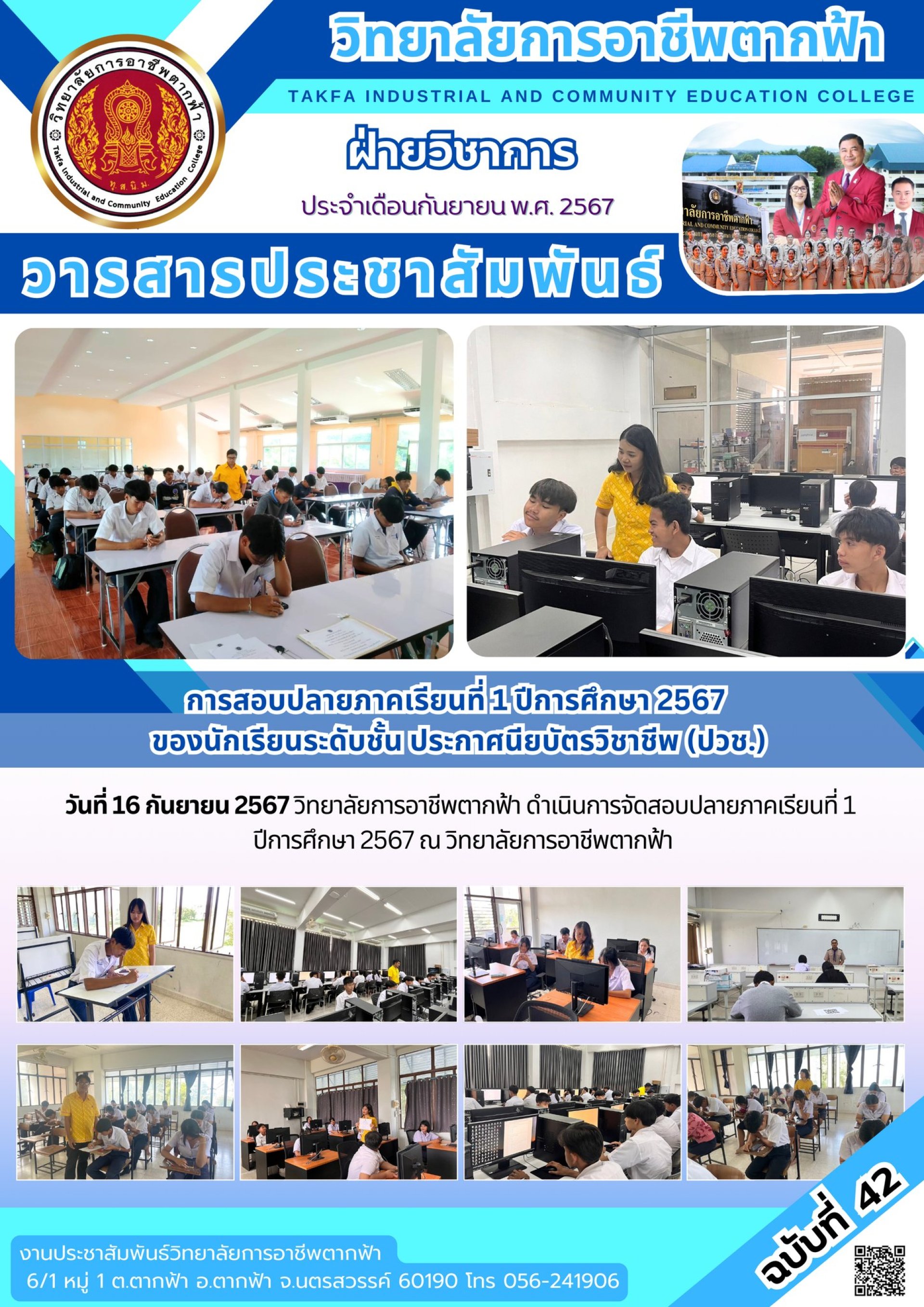วารสารตากฟ้า ประจำเดือน กันยายน 2567 ฉบับที่ 42 การสอบปลายภาคเรียนที่ 1 ปีการศึกษา 2567 ของนักเรียนระดับชั้น ประกาศนียบัตรวิชาชีพ (ปวช.)