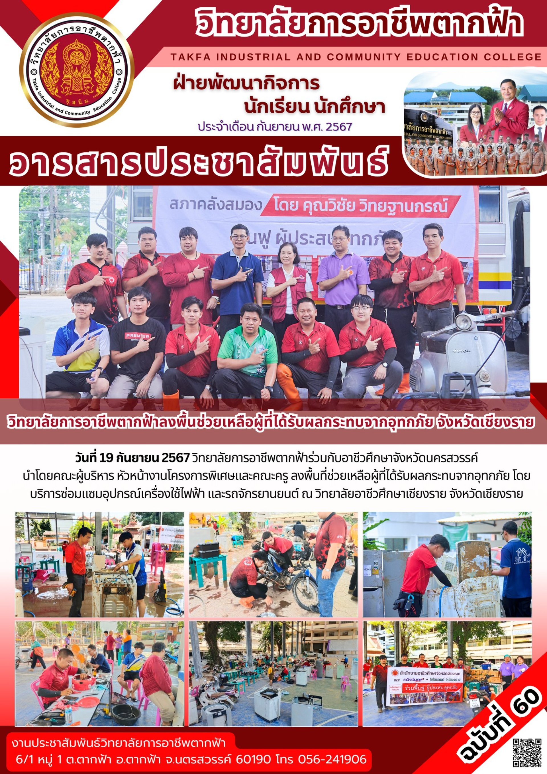 วารสารตากฟ้า ประจำเดือน กันยายน 2567 ฉบับที่ 60 วิทยาลัยการอาชีพตากฟ้าลงพื้นช่วยเหลือผู้ที่ได้รับผลกระทบจากอุทกภัย จังหวัดเชียงราย