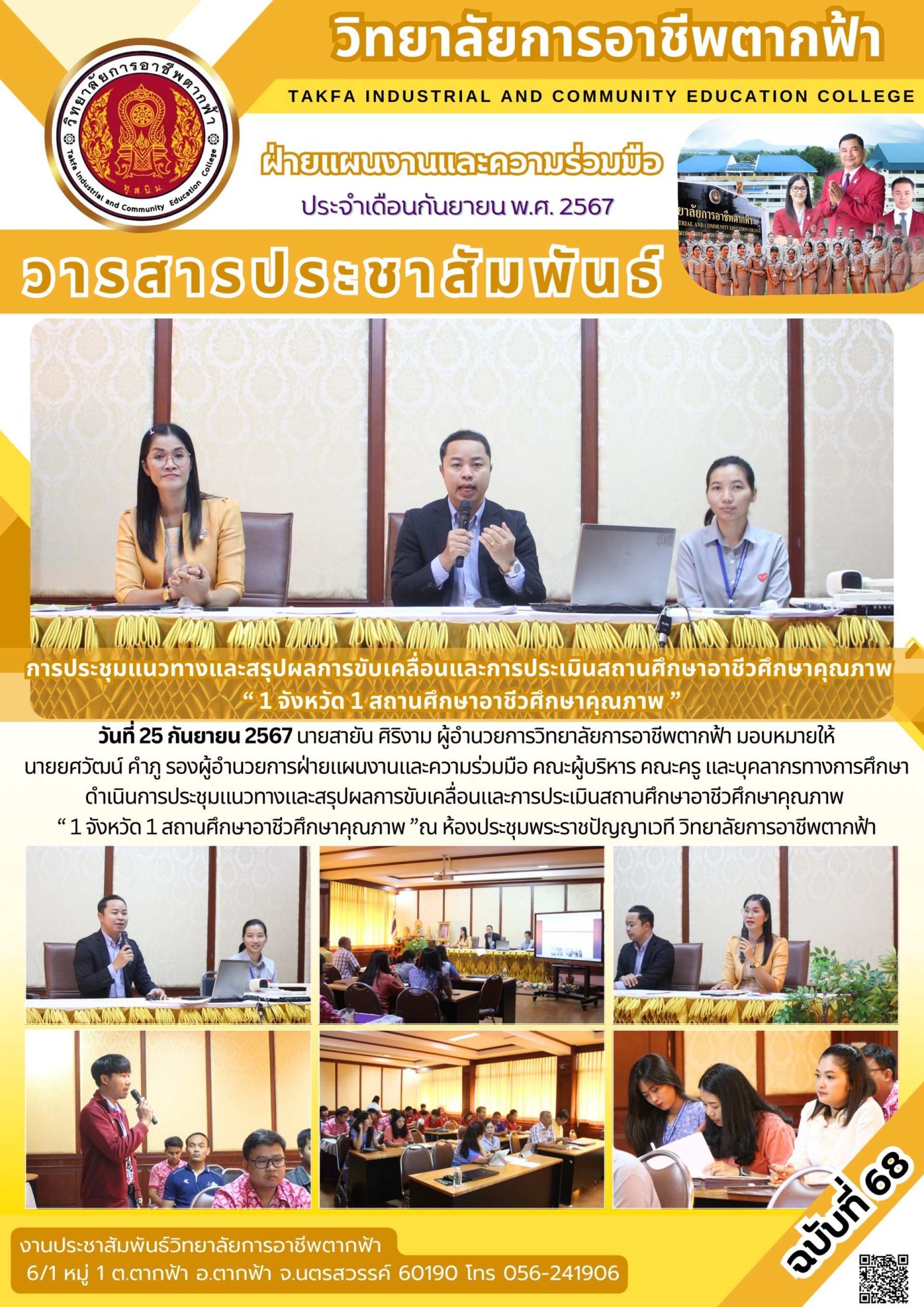 วารสารตากฟ้า ประจำเดือน กันยายน 2567 ฉบับที่ 68 การประชุมแนวทางและสรุปผลการขับเคลื่อนและการประเมินสถานศึกษาอาชีวศึกษาคุณภาพ 1 จังหวัด 1 สถานศึกษาอาชีวศึกษาคุณภาพ