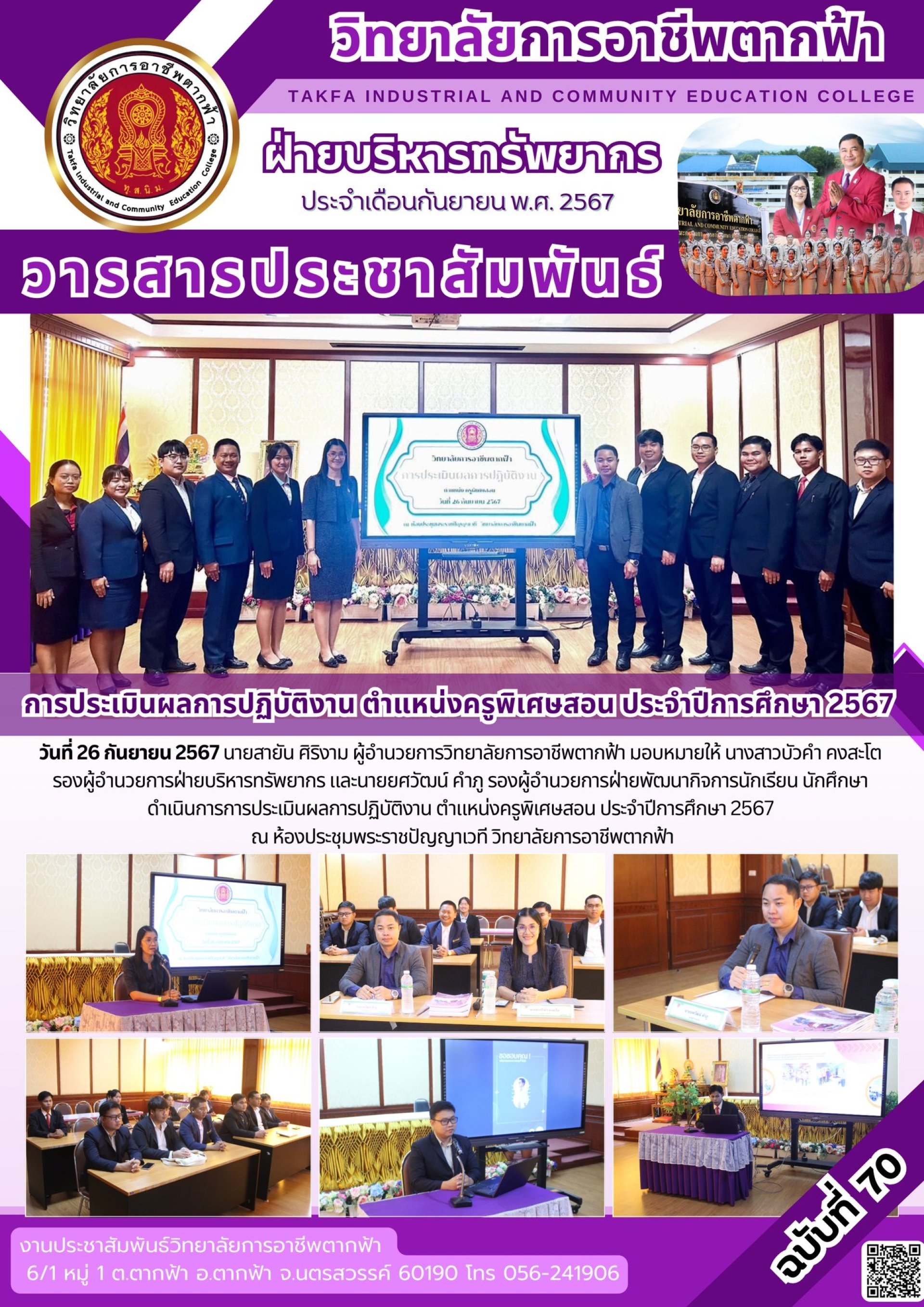 วารสารตากฟ้า ประจำเดือน กันยายน 2567 ฉบับที่ 70 การประเมินผลการปฏิบัติงาน ตำแหน่งครูพิเศษสอน ประจำปีการศึกษา 2567