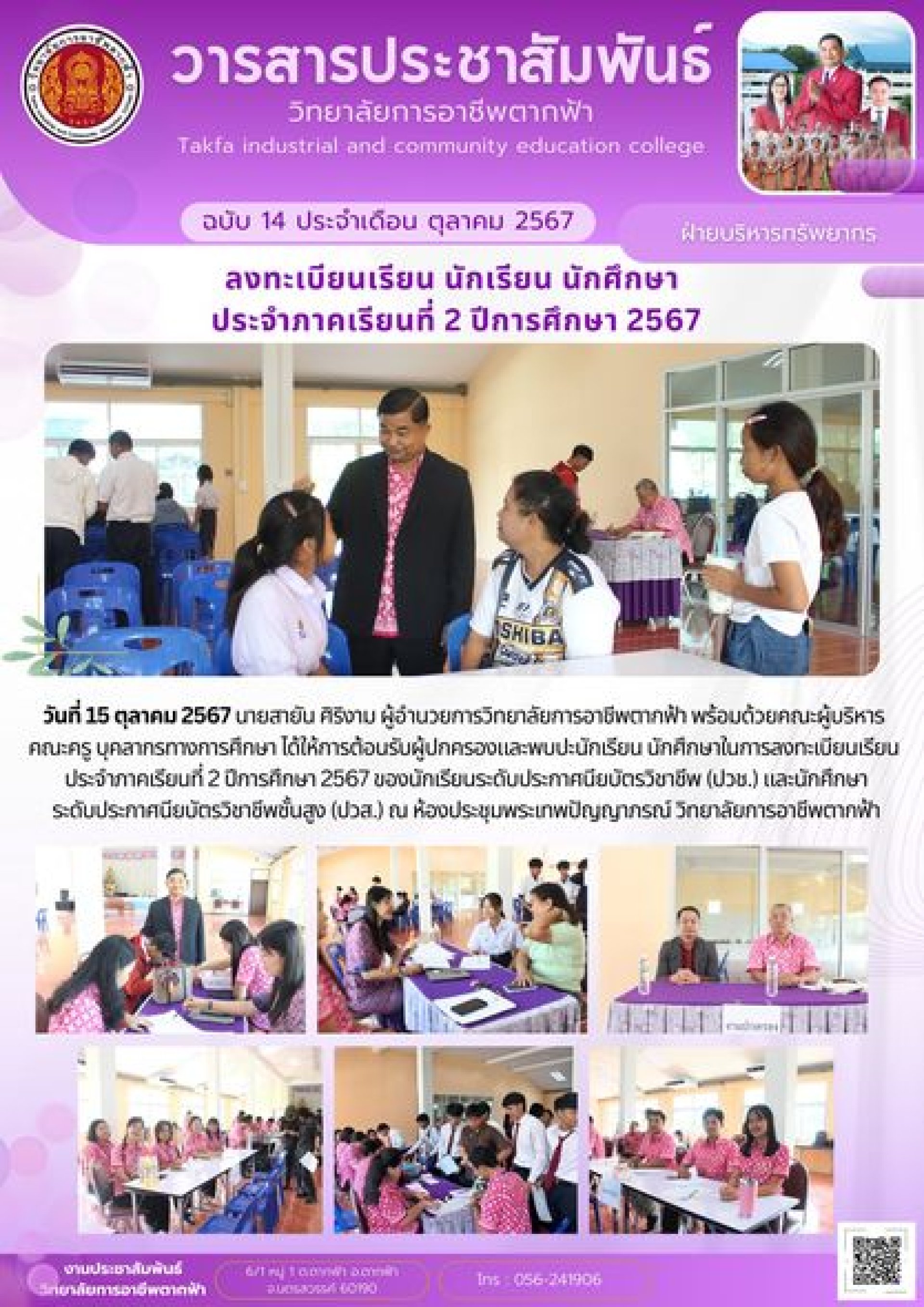 วารสารตากฟ้า ประจำเดือน ตุลาคม 2567 ฉบับที่ 14 ลงทะเบียนเรียน นักเรียน นักศึกษา ประจำภาคเรียนที่ 2 ปีการศึกษา 2567
