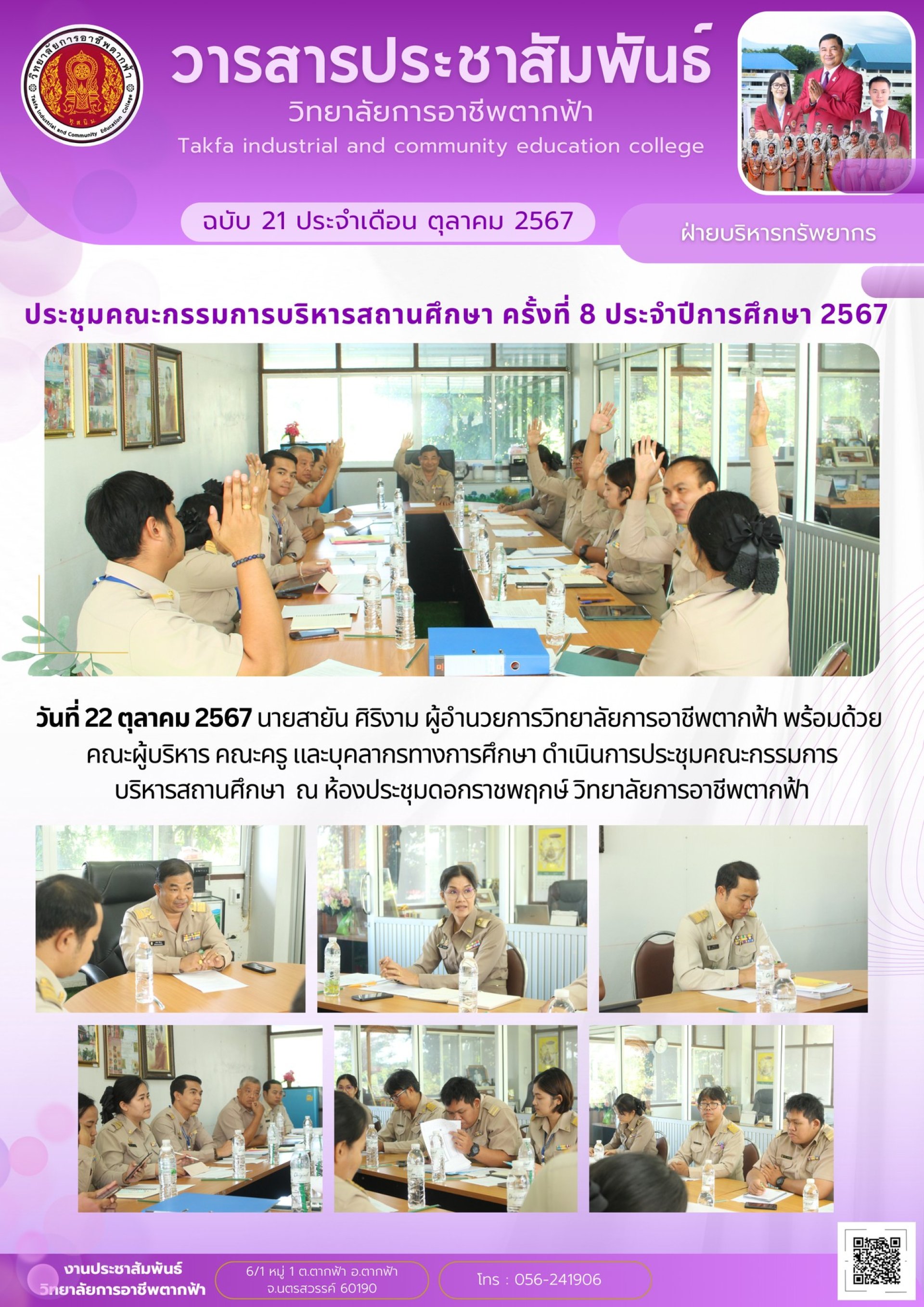 วารสารตากฟ้า ประจำเดือน ตุลาคม 2567 ฉบับที่ 21 ประชุมคณะกรรมการบริหารสถานศึกษา ครั้งที่ 8 ประจำปีการศึกษา 2567