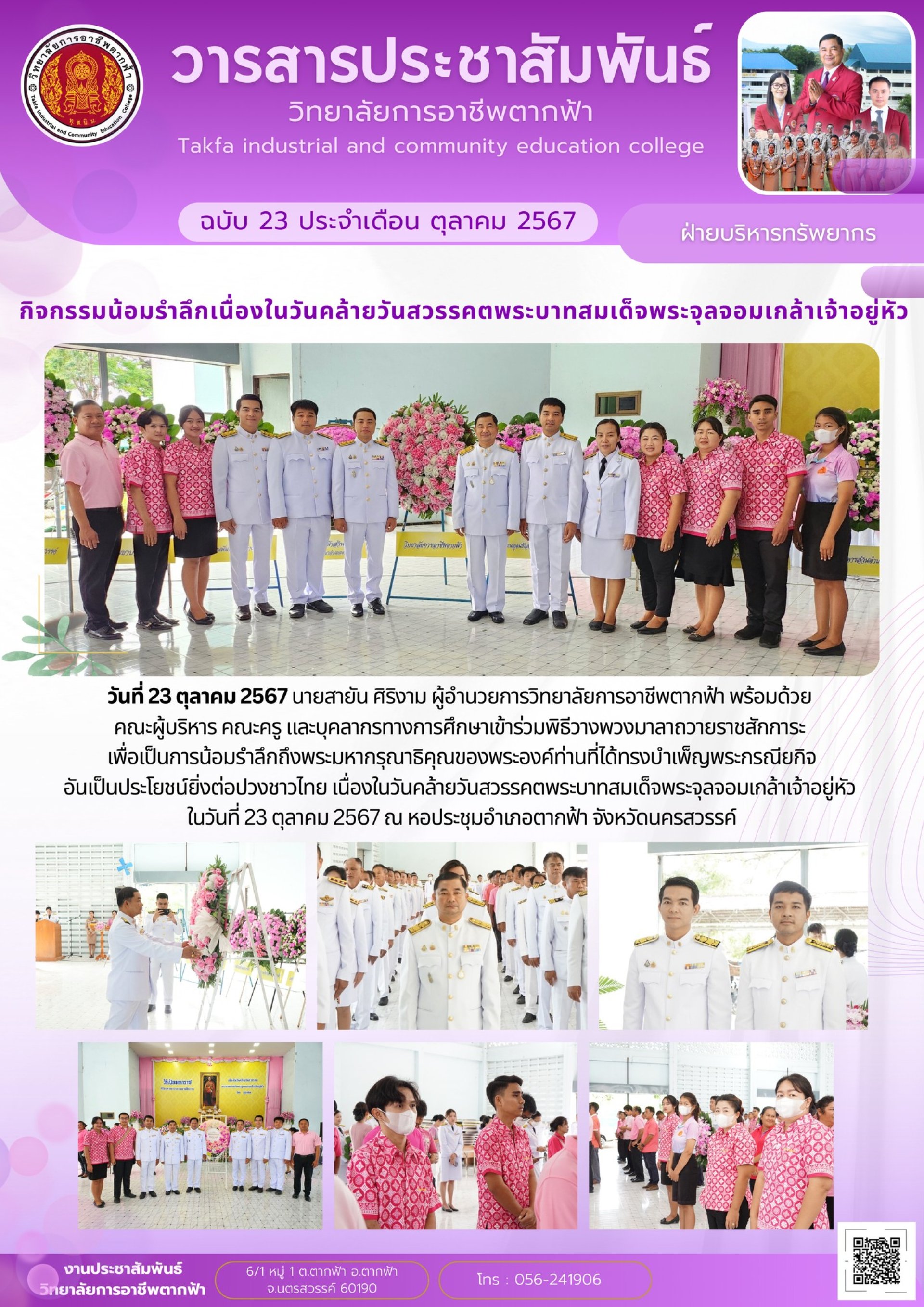 วารสารตากฟ้า ประจำเดือน ตุลาคม 2567 ฉบับที่ 23 กิจกรรมน้อมรำลึกเนื่องในวันคล้ายวันสวรรคตพระบาทสมเด็จพระจุลจอมเกล้าเจ้าอยู่หัว