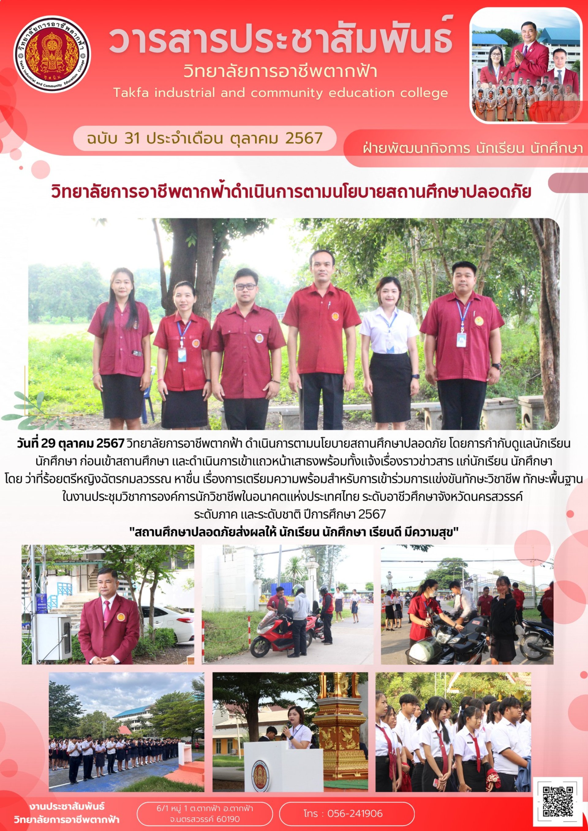 วารสารตากฟ้า ประจำเดือน ตุลาคม 2567 ฉบับที่ 31 วิทยาลัยการอาชีพตากฟ้าดำเนินการตามนโยบายสถานศึกษาปลอดภัย