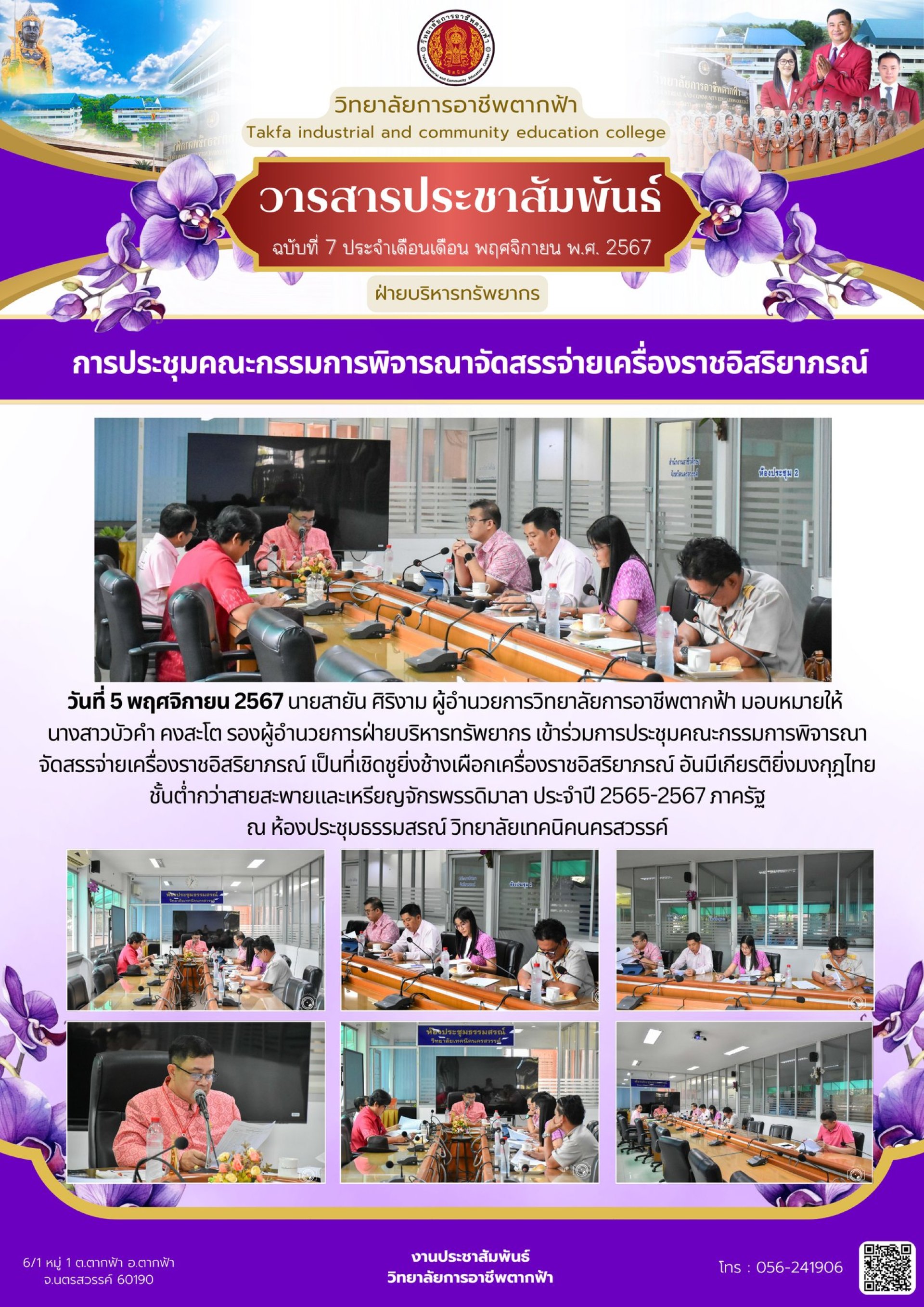 วารสารตากฟ้า ประจำเดือน พฤศจิกายน 2567 ฉบับที่ 7 การประชุมคณะกรรมการพิจารณาจัดสรรจ่ายเครื่องราชอิสริยาภรณ์