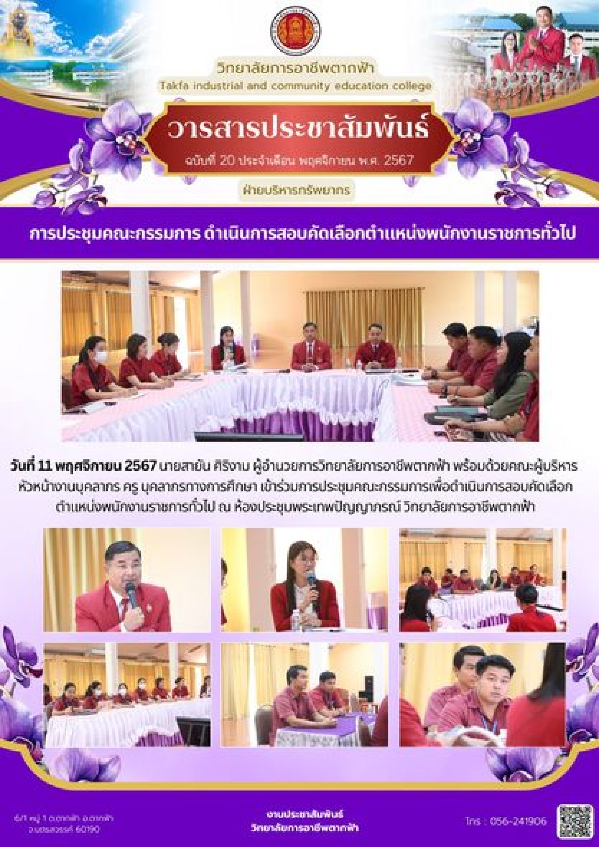 วารสารตากฟ้า ประจำเดือน พฤศจิกายน 2567 ฉบับที่ 20 การประชุมคณะกรรมการ ดำเนินการสอบคัดเลือกตำแหน่งพนักงานราชการทั่วไป