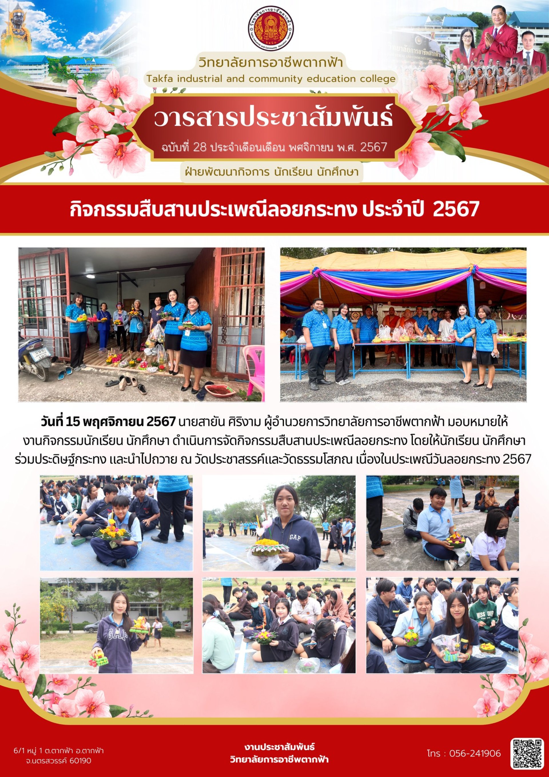 วารสารตากฟ้า ประจำเดือน พฤศจิกายน 2567 ฉบับที่ 28 กิจกรรมสืบสานประเพณีลอยกระทง ประจำปี 2567