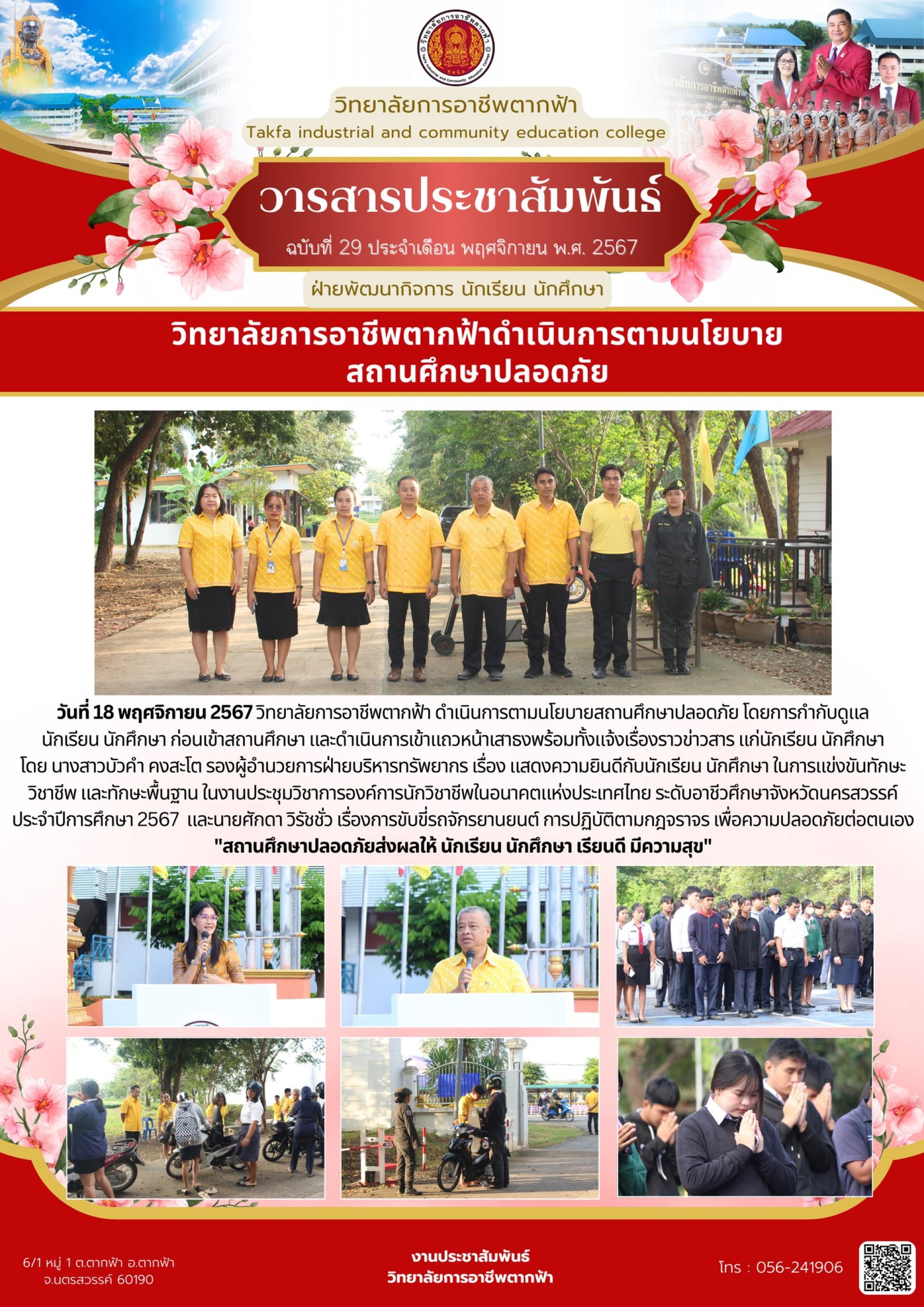 วารสารตากฟ้า ประจำเดือน พฤศจิกายน 2567 ฉบับที่ 29 วิทยาลัยการอาชีพตากฟ้าดำเนินการตามนโยบายสถานศึกษาปลอดภัย