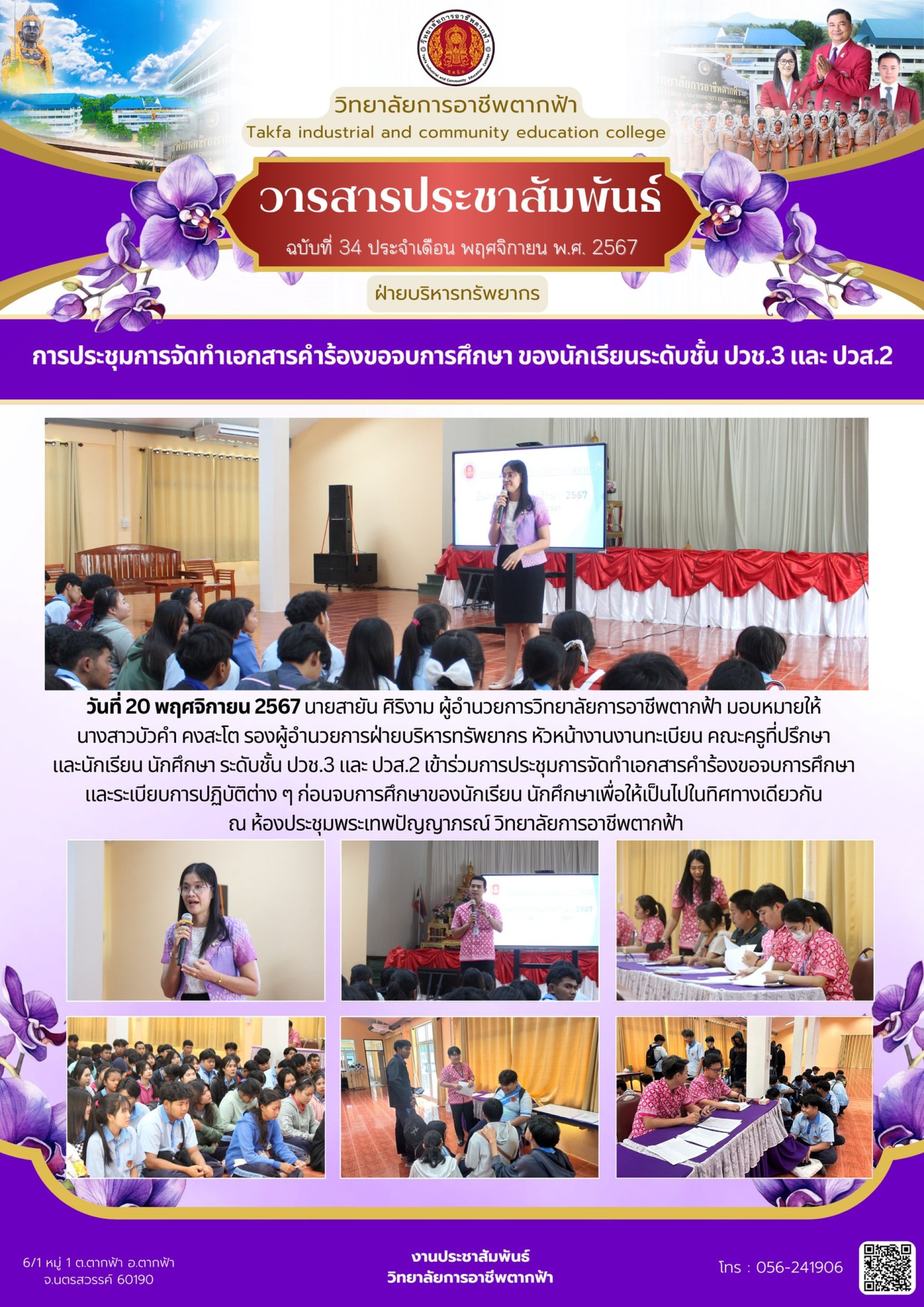 วารสารตากฟ้า ประจำเดือน พฤศจิกายน 2567 ฉบับที่ 34 การประชุมการจัดทำเอกสารคำร้องขอจบการศึกษา ของนักเรียนระดับชั้น ปวช.3 และ ปวส.2