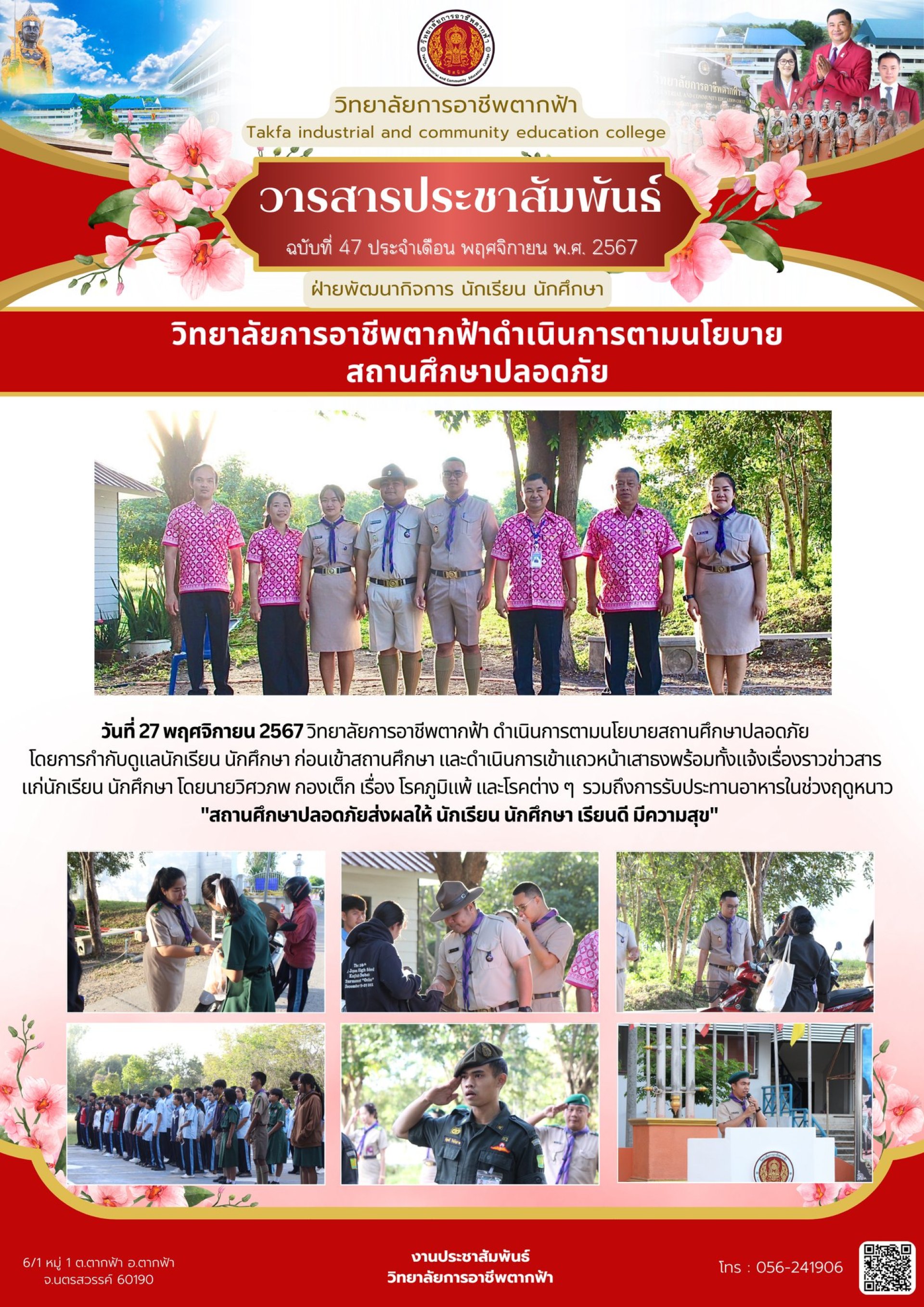 วารสารตากฟ้า ประจำเดือน พฤศจิกายน 2567 ฉบับที่ 47 วิทยาลัยการอาชีพตากฟ้าดำเนินการตามนโยบายสถานศึกษาปลอดภัย