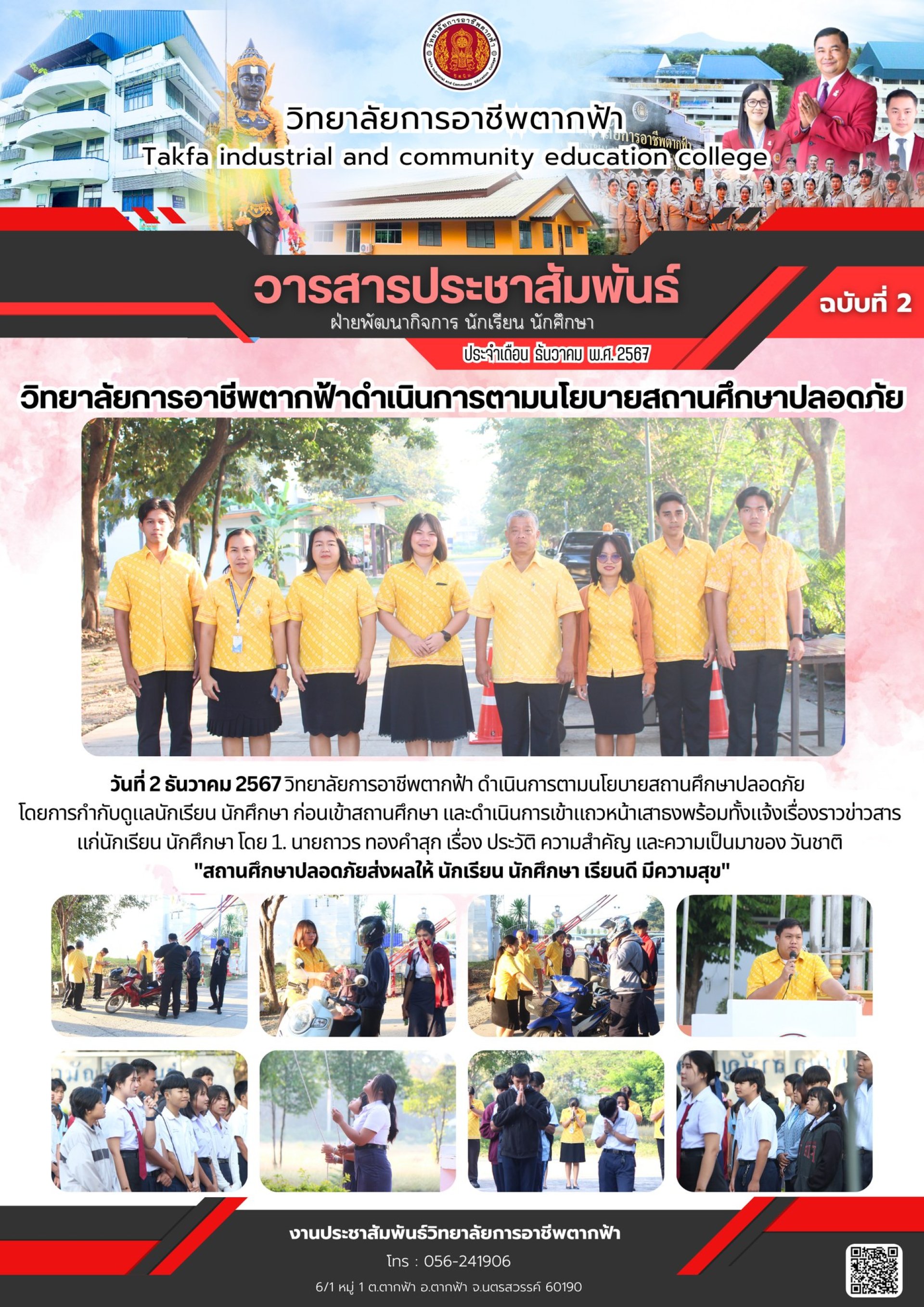 วารสารตากฟ้า ประจำเดือน ธันวาคม 2567 ฉบับที่ 2 วิทยาลัยการอาชีพตากฟ้าดำเนินการตามนโยบายสถานศึกษาปลอดภัย