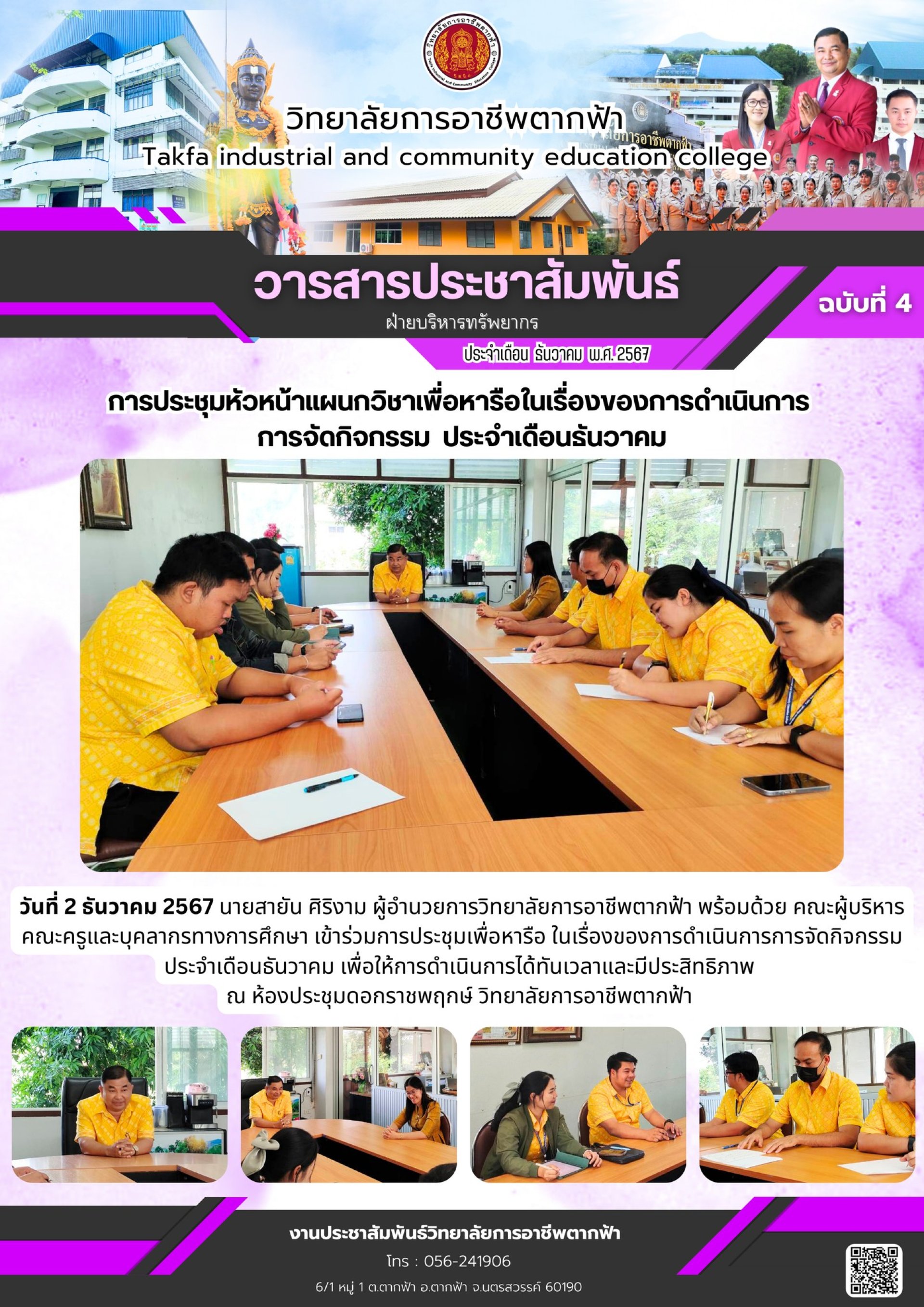 วารสารตากฟ้า ประจำเดือน ธันวาคม 2567 ฉบับที่ 4 การประชุมหัวหน้าแผนกวิชาเพื่อหารือในเรื่องของการดำเนินการ การจัดกิจกรรม ประจำเดือนธันวาคม