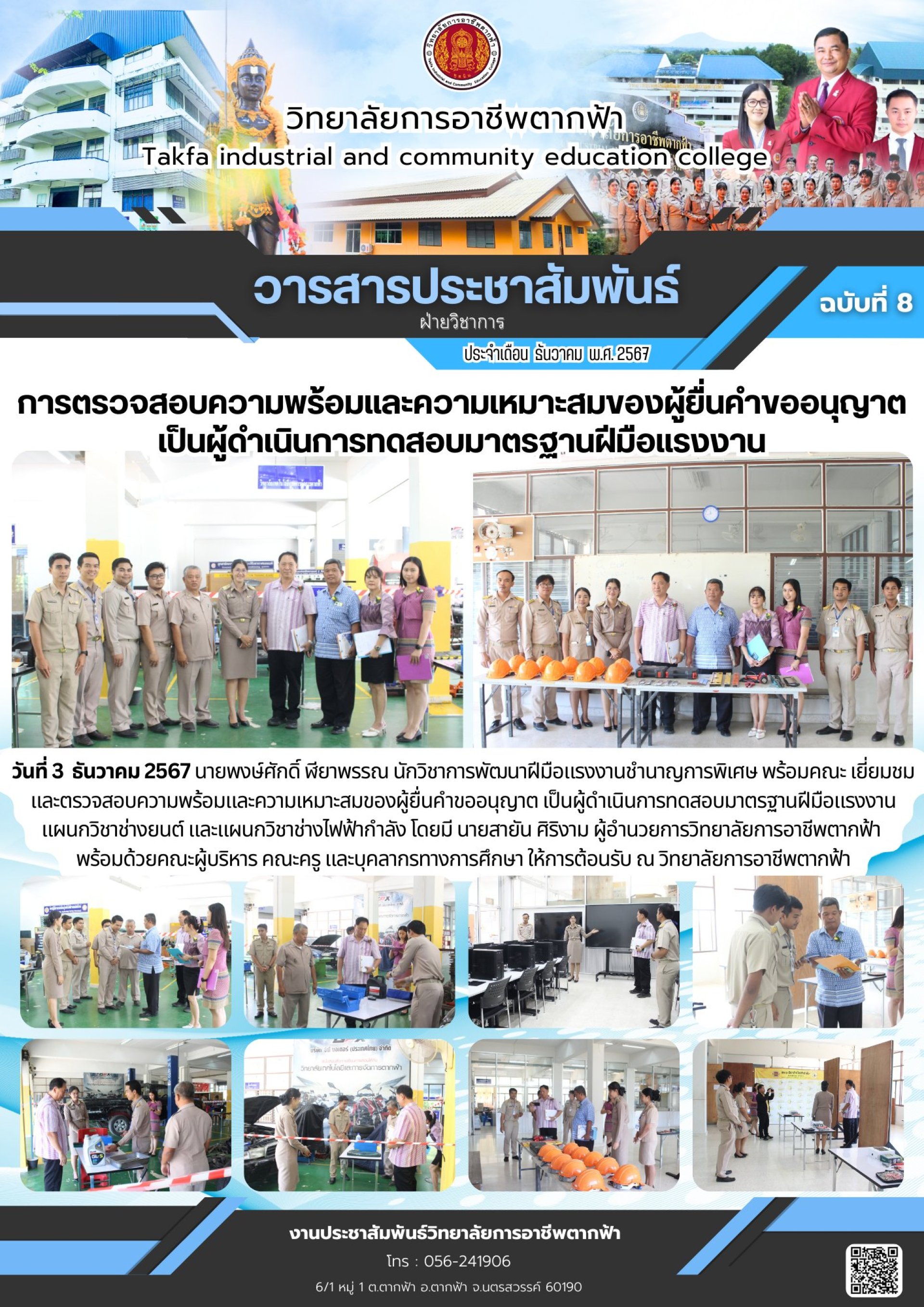 วารสารตากฟ้า ประจำเดือน ธันวาคม 2567 ฉบับที่ 8 การตรวจสอบความพร้อมและความเหมาะสมของผู้ยื่นคำขออนุญาต เป็นผู้ดำเนินการทดสอบมาตรฐานฝีมือแรงงาน