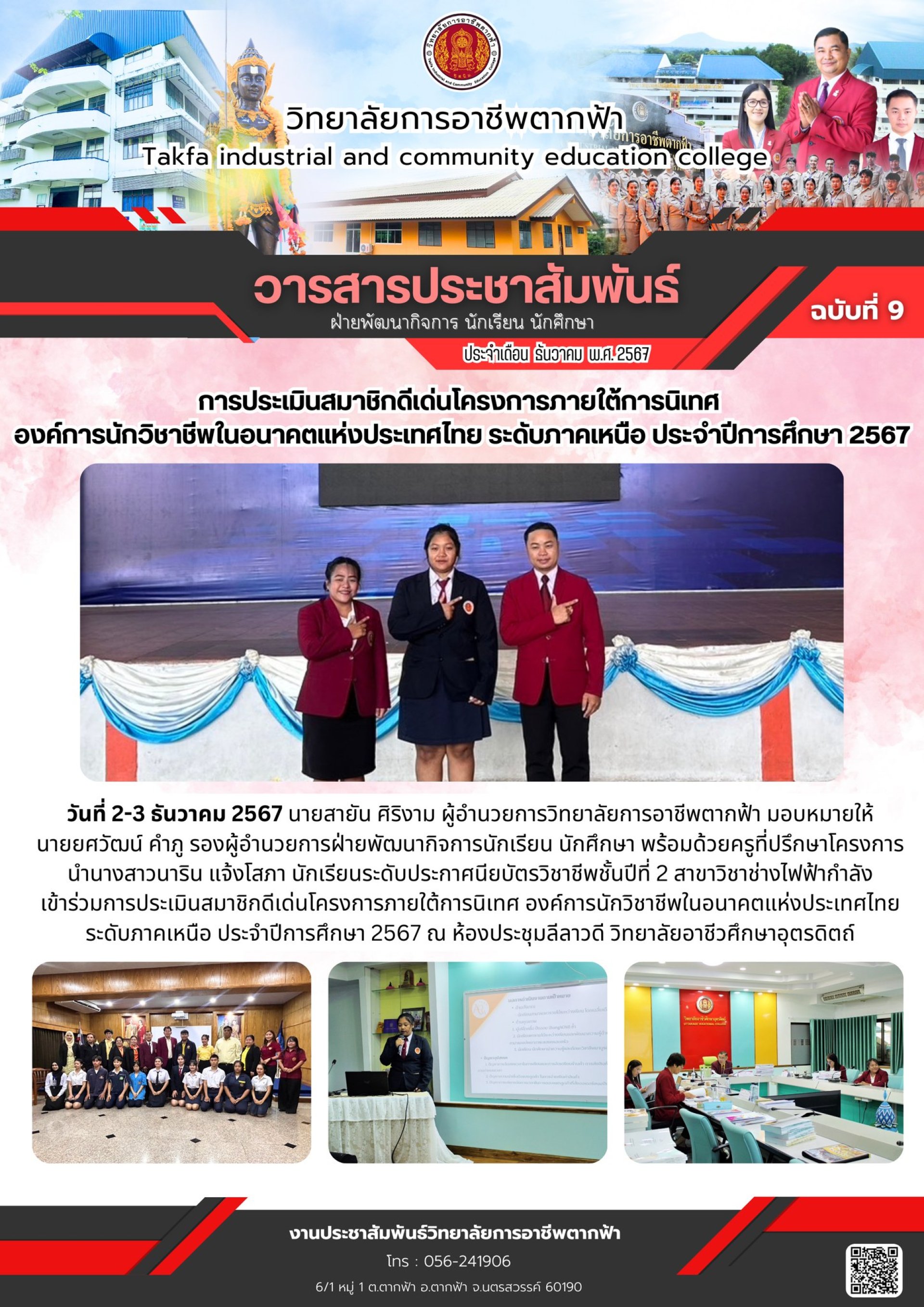 วารสารตากฟ้า ประจำเดือน ธันวาคม 2567 ฉบับที่ 9 การประเมินสมาชิกดีเด่นโครงการภายใต้การนิเทศ องค์การนักวิชาชีพในอนาคตแห่งประเทศไทย ระดับภาคเหนือ ประจำปีการศึกษา 2567