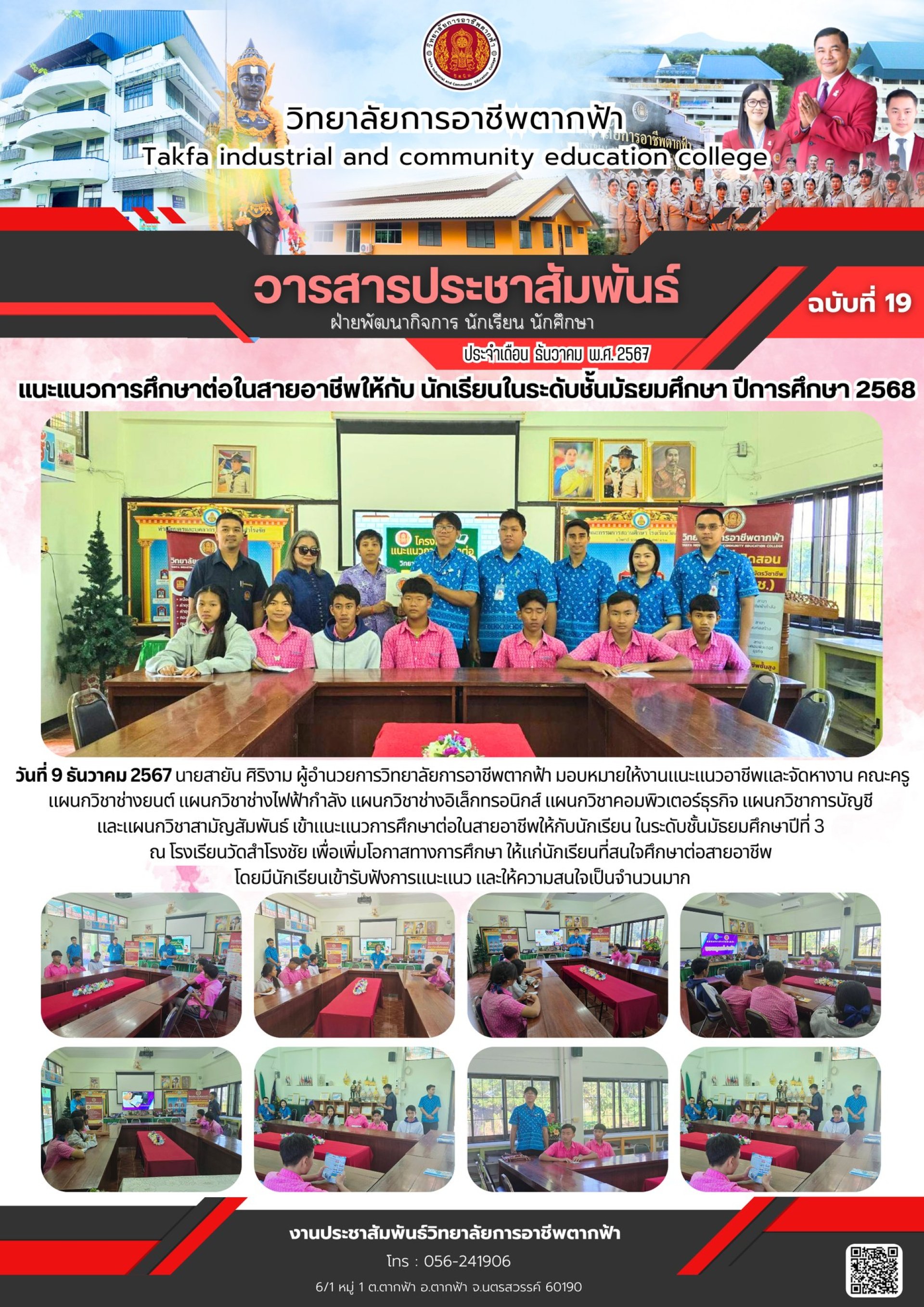 วารสารตากฟ้า ประจำเดือน ธันวาคม 2567 ฉบับที่ 19 แนะแนวการศึกษาต่อในสายอาชีพให้กับ นักเรียนในระดับชั้นมัธยมศึกษา ปีการศึกษา 2568