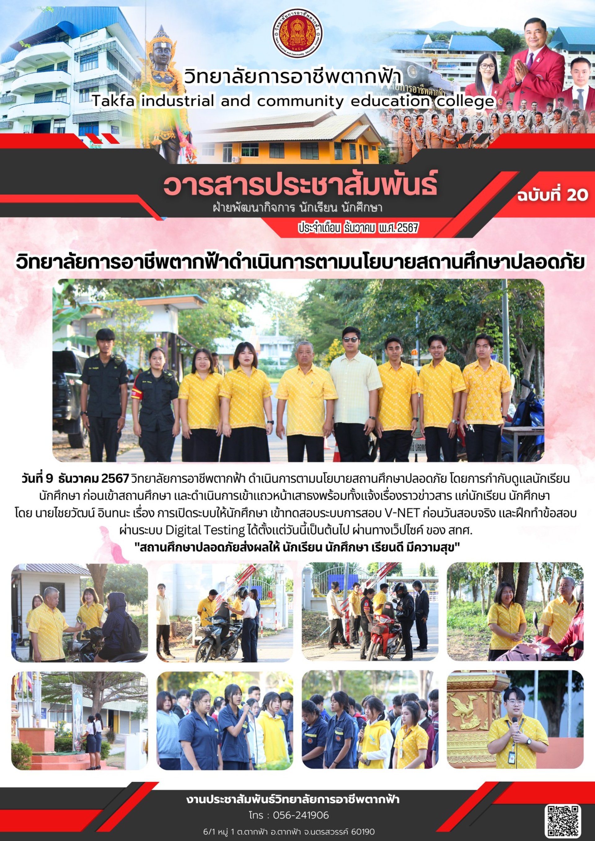 วารสารตากฟ้า ประจำเดือน ธันวาคม 2567 ฉบับที่ 20 วิทยาลัยการอาชีพตากฟ้าดำเนินการตามนโยบายสถานศึกษาปลอดภัย