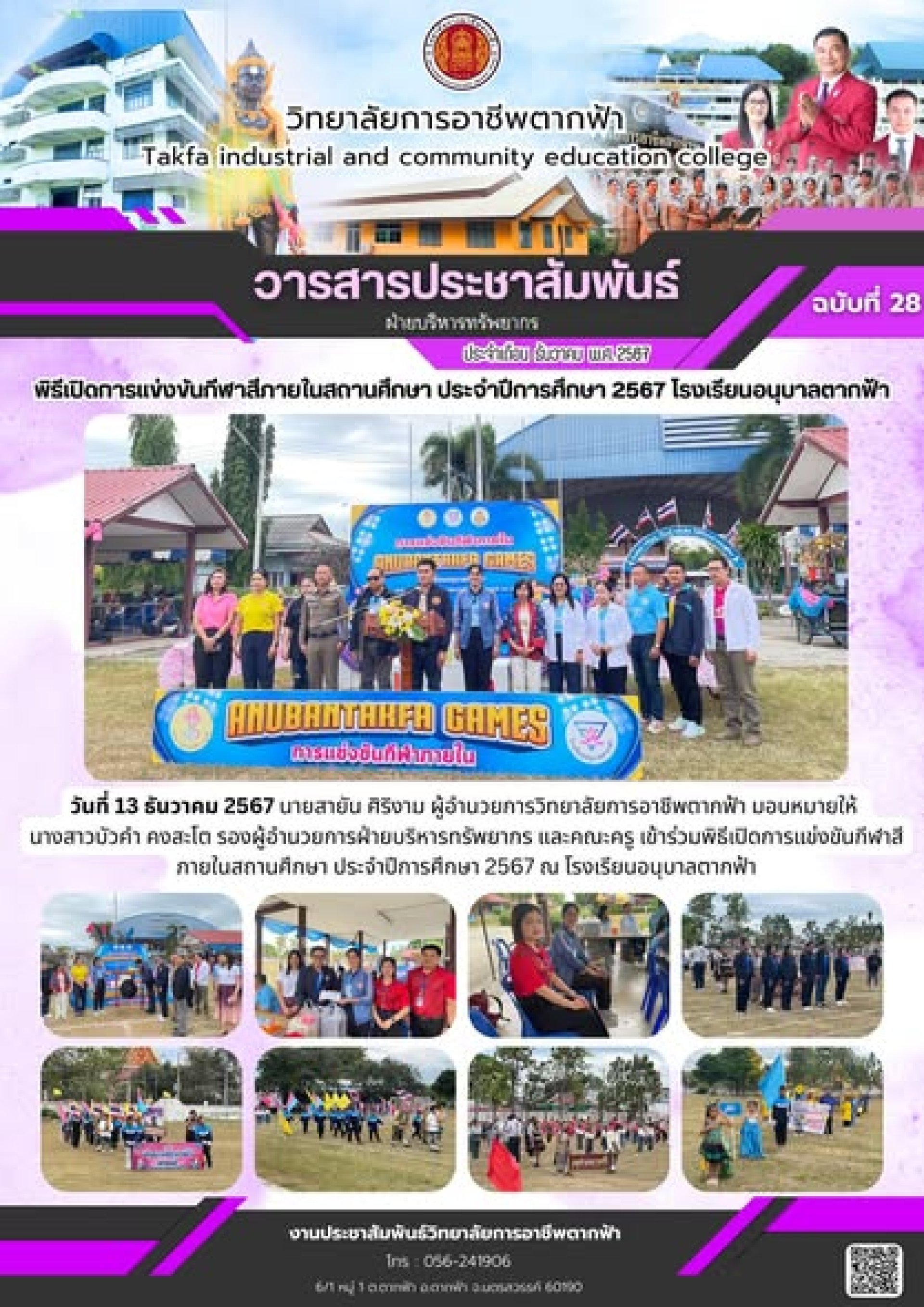 วารสารตากฟ้า ประจำเดือน ธันวาคม 2567 ฉบับที่ 28 พิธีเปิดการแข่งขันกีฬาสีภายในสถานศึกษา ประจำปีการศึกษา 2567 โรงเรียนอนุบาลตากฟ้า