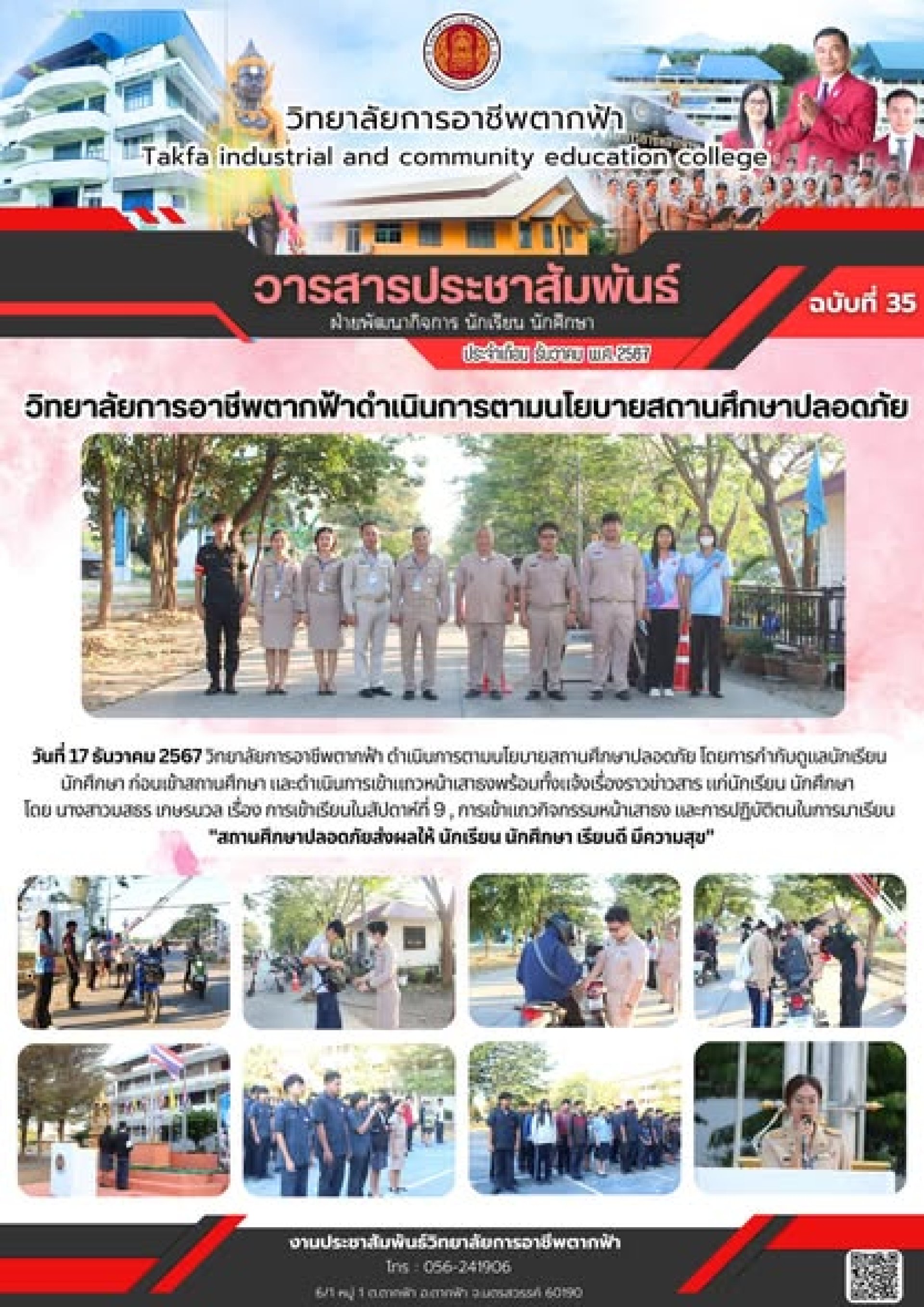 วารสารตากฟ้า ประจำเดือน ธันวาคม 2567 ฉบับที่ 35 วิทยาลัยการอาชีพตากฟ้าดำเนินการตามนโยบายสถานศึกษาปลอดภัย