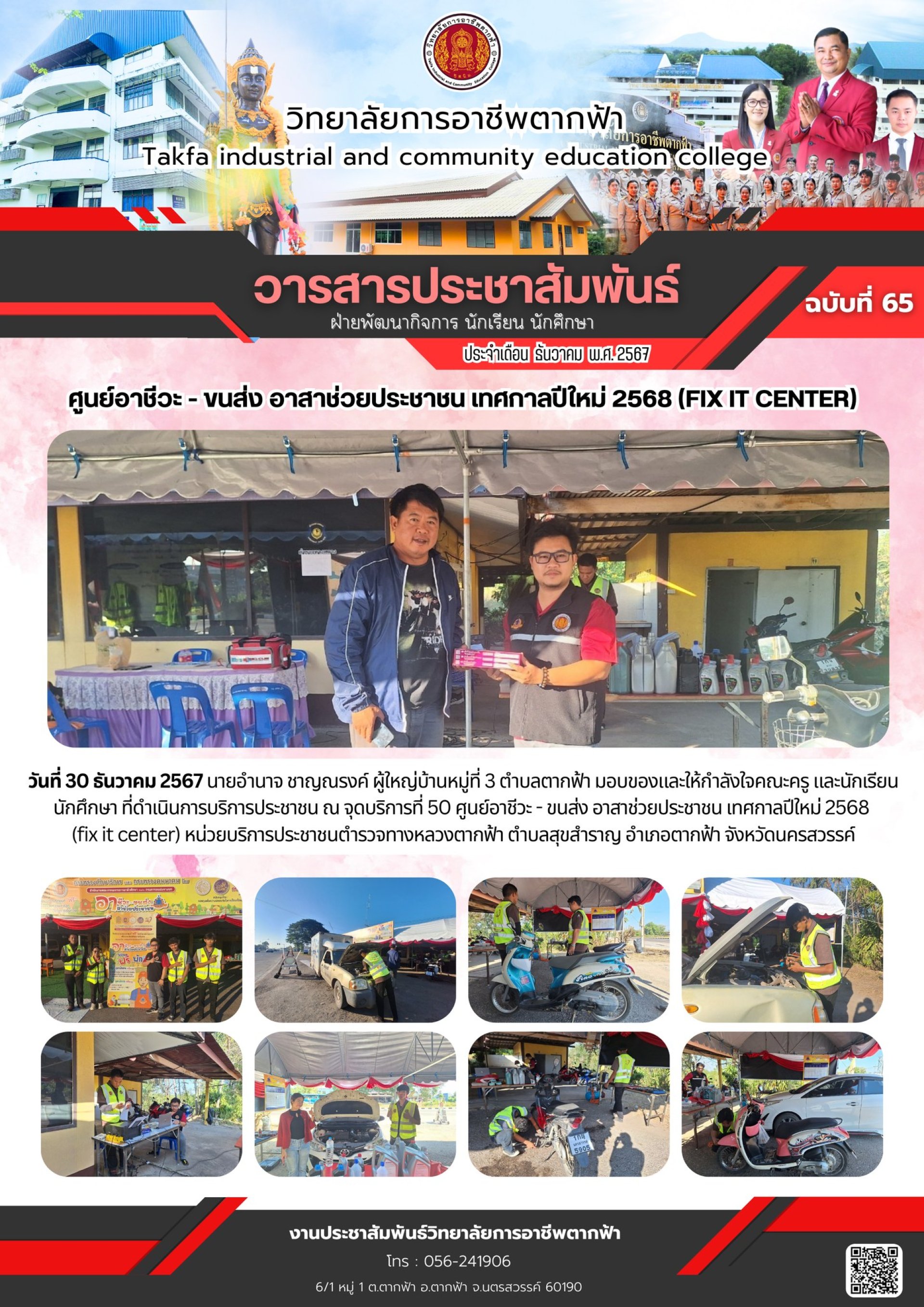 วารสารตากฟ้า ประจำเดือน ธันวาคม 2567 ฉบับที่ 65 ศูนย์อาชีวะ - ขนส่ง อาสาช่วยประชาชน เทศกาลปีใหม่ 2568 (fix it center)