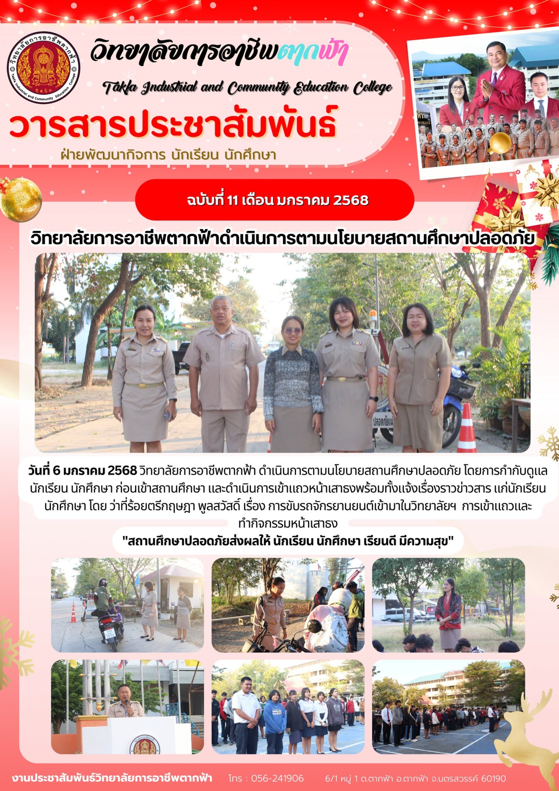 วารสารตากฟ้า ประจำเดือน มกราคม 2568 ฉบับที่ 11 วิทยาลัยการอาชีพตากฟ้าดำเนินการตามนโยบายสถานศึกษาปลอดภัย