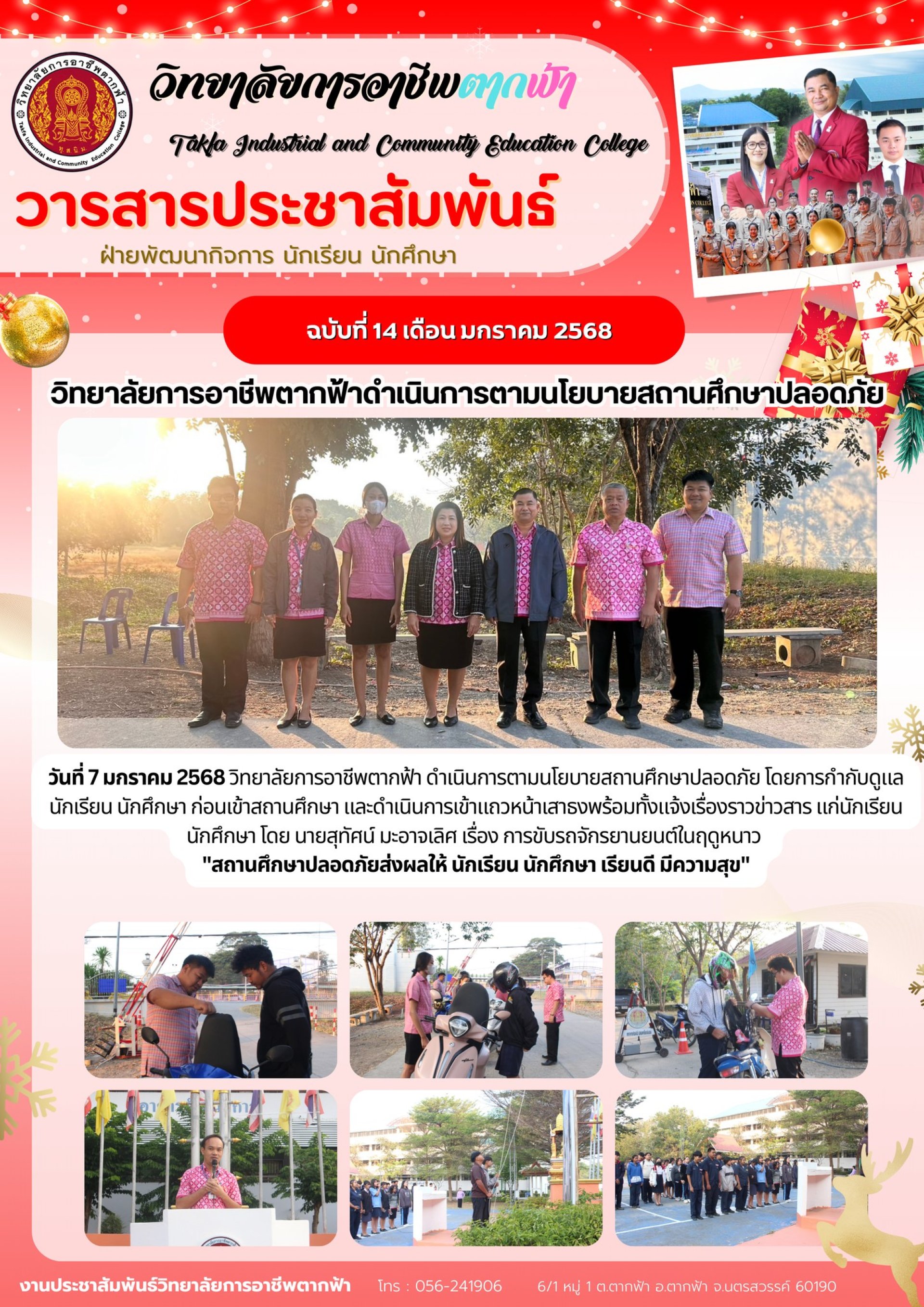 วารสารตากฟ้า ประจำเดือน มกราคม 2568 ฉบับที่ 14 วิทยาลัยการอาชีพตากฟ้าดำเนินการตามนโยบายสถานศึกษาปลอดภัย