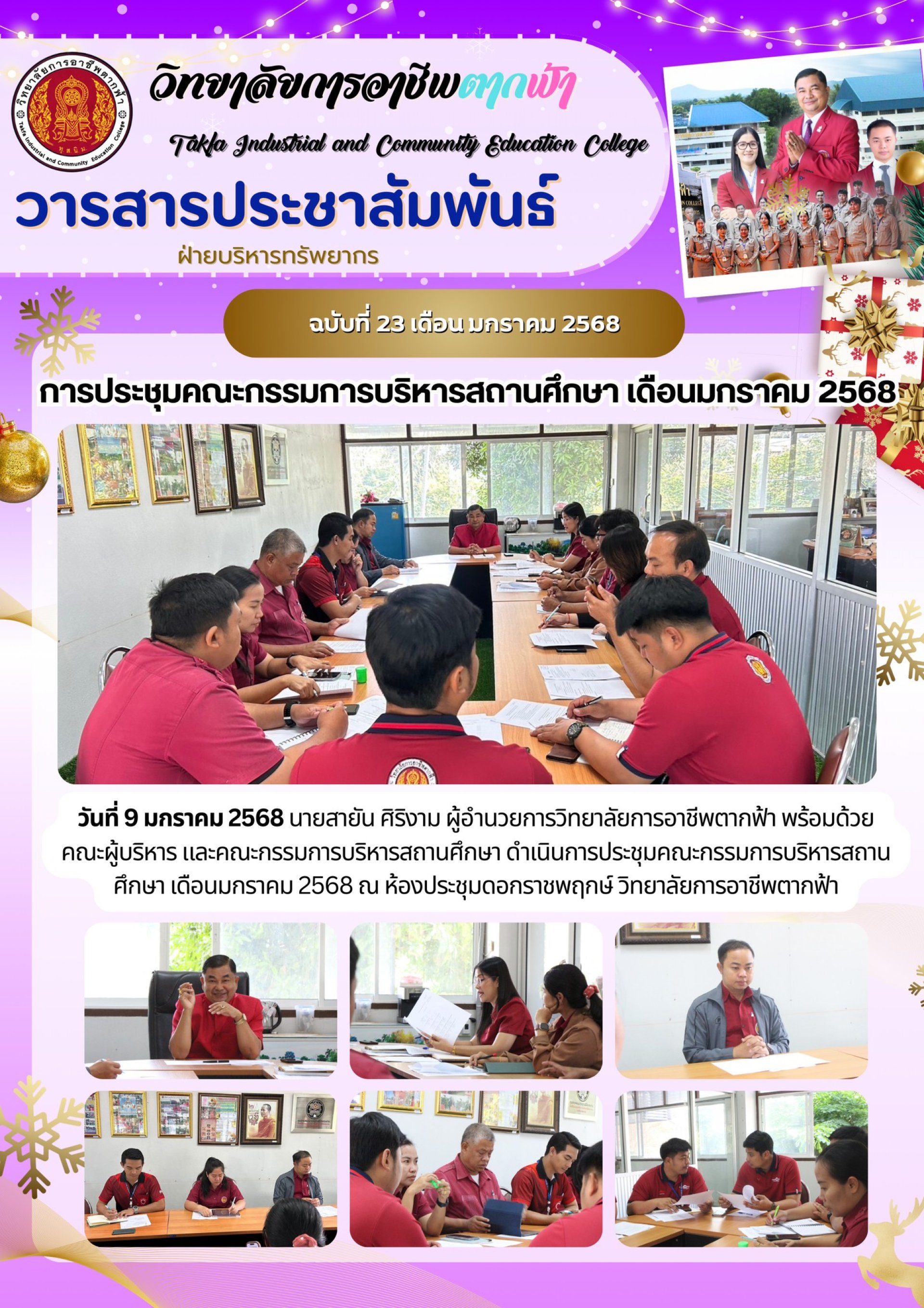 วารสารตากฟ้า ประจำเดือน มกราคม 2568 ฉบับที่ 23 การประชุมคณะกรรมการบริหารสถานศึกษา เดือนมกราคม 2568