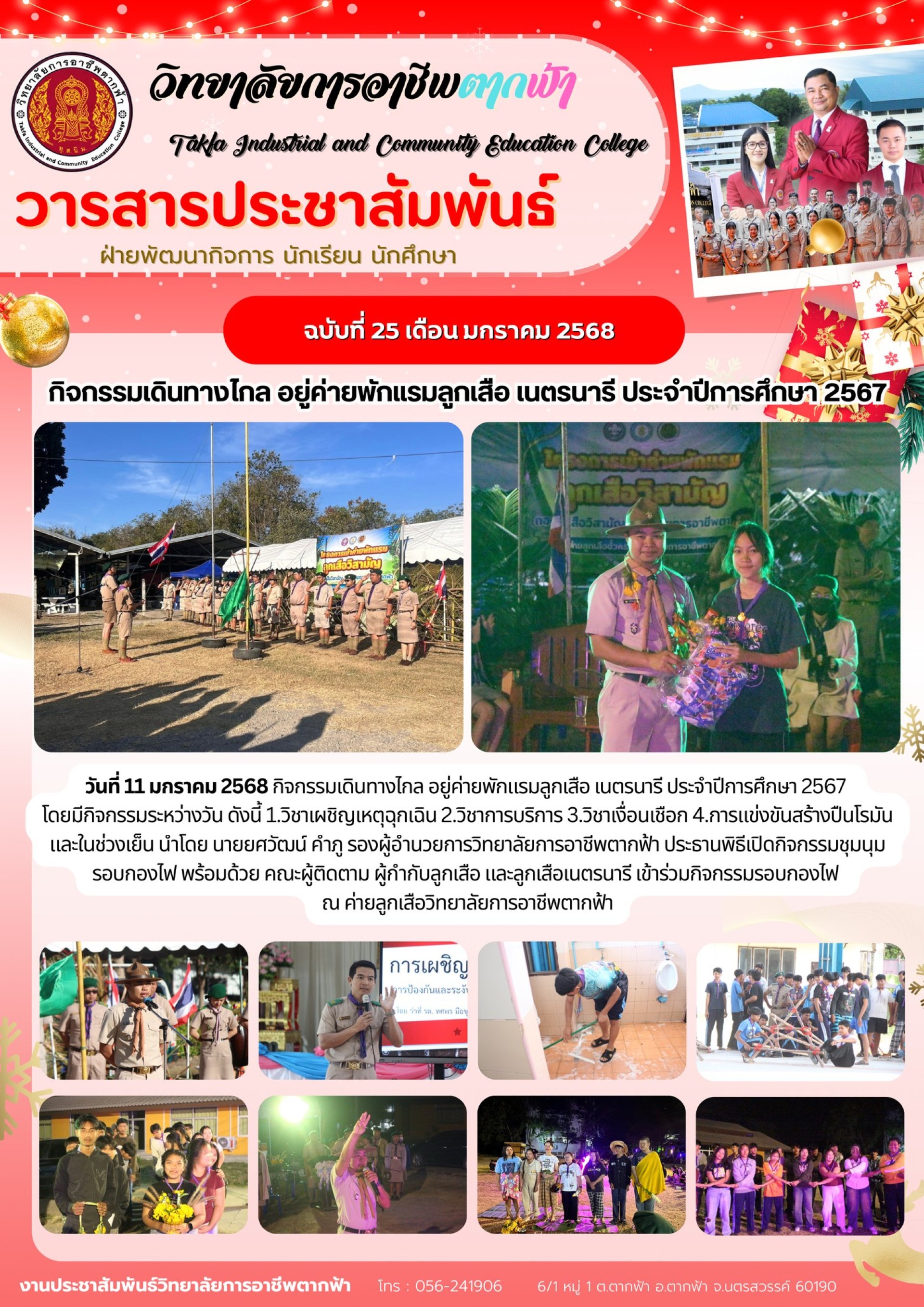 วารสารตากฟ้า ประจำเดือน มกราคม 2568 ฉบับที่ 25 กิจกรรมเดินทางไกล อยู่ค่ายพักแรมลูกเสือ เนตรนารี ประจำปีการศึกษา 2567