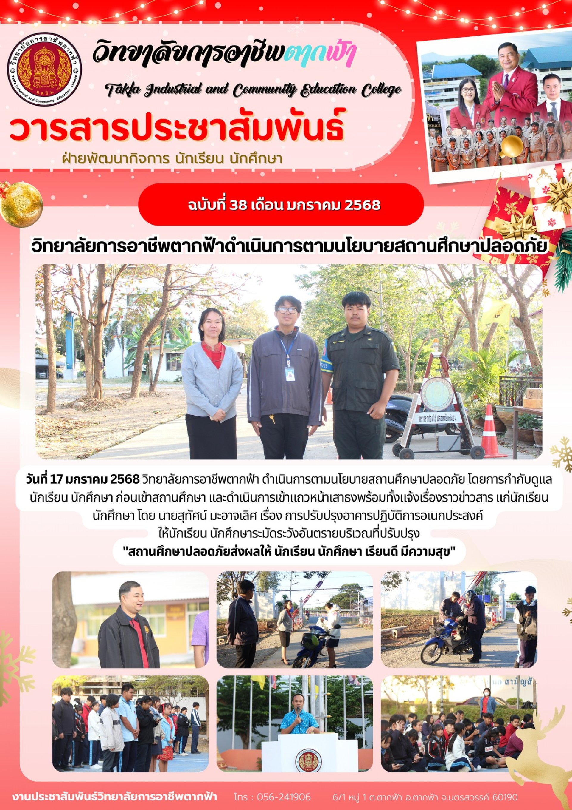 วารสารตากฟ้า ประจำเดือน มกราคม 2568 ฉบับที่ 38 วิทยาลัยการอาชีพตากฟ้าดำเนินการตามนโยบายสถานศึกษาปลอดภัย