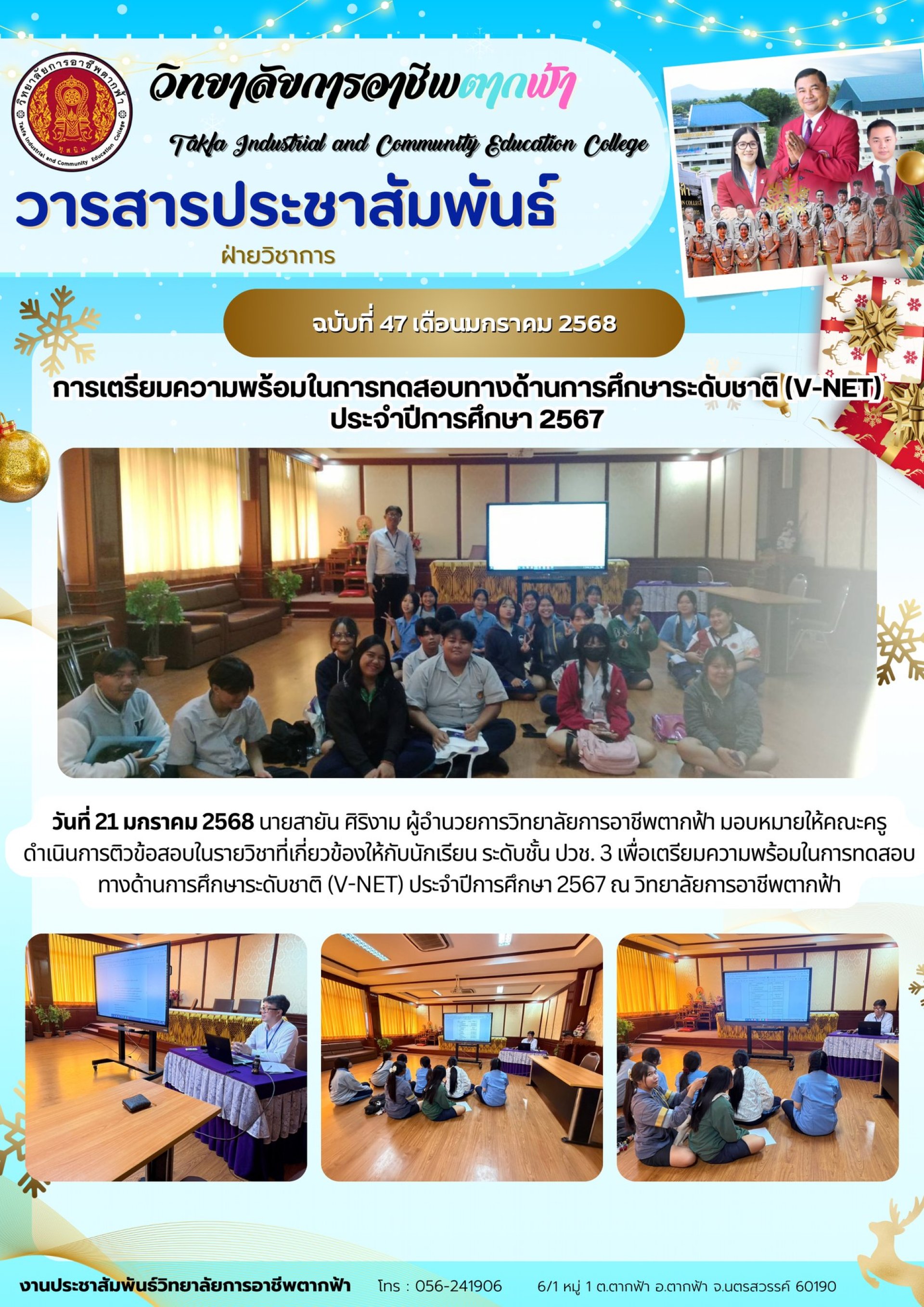 วารสารตากฟ้า ประจำเดือน มกราคม 2568 ฉบับที่ 47 การเตรียมความพร้อมในการทดสอบทางด้านการศึกษาระดับชาติ (V-NET) ประจำปีการศึกษา 2567