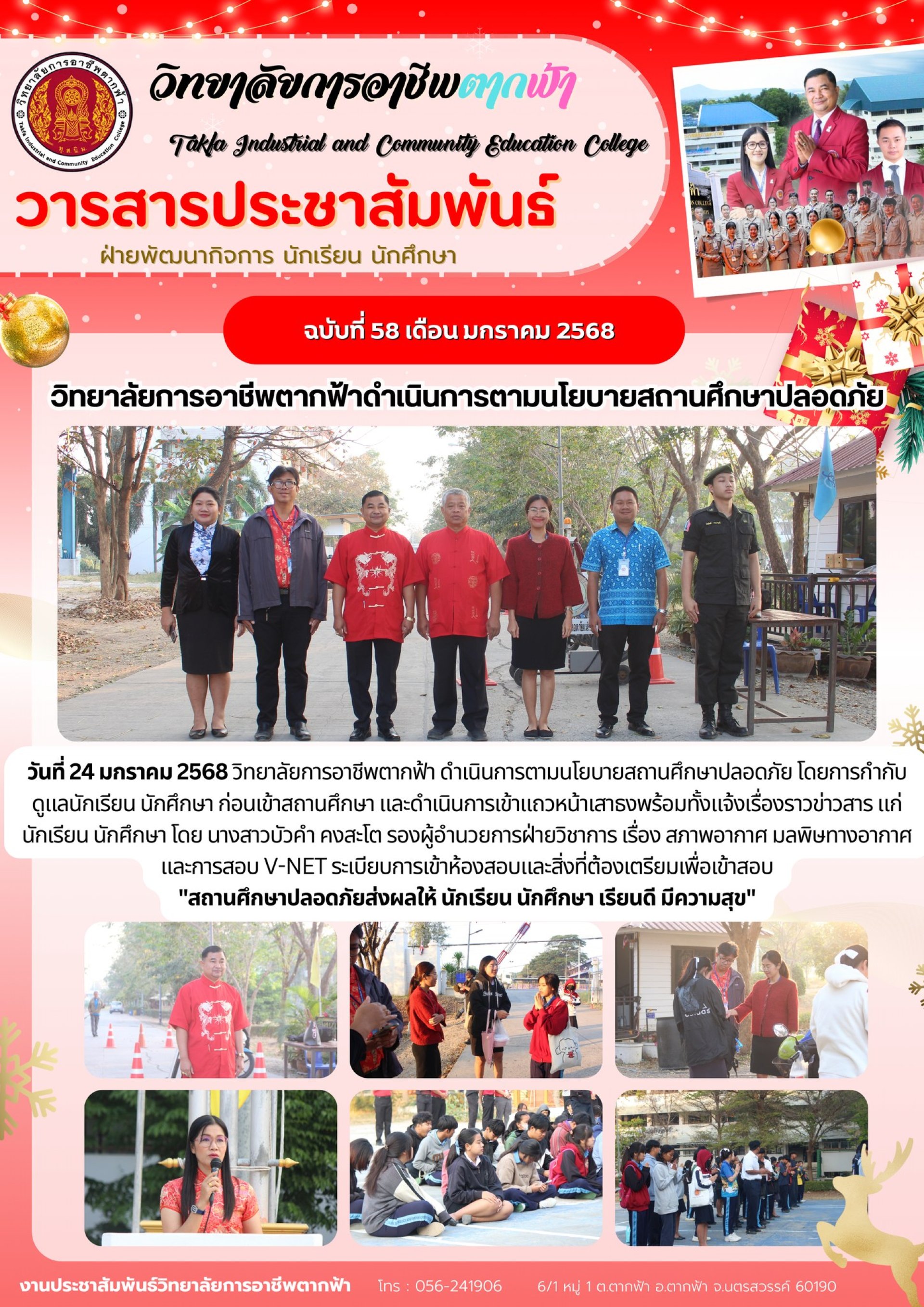วารสารตากฟ้า ประจำเดือน มกราคม 2568 ฉบับที่ 58 วิทยาลัยการอาชีพตากฟ้าดำเนินการตามนโยบายสถานศึกษาปลอดภัย